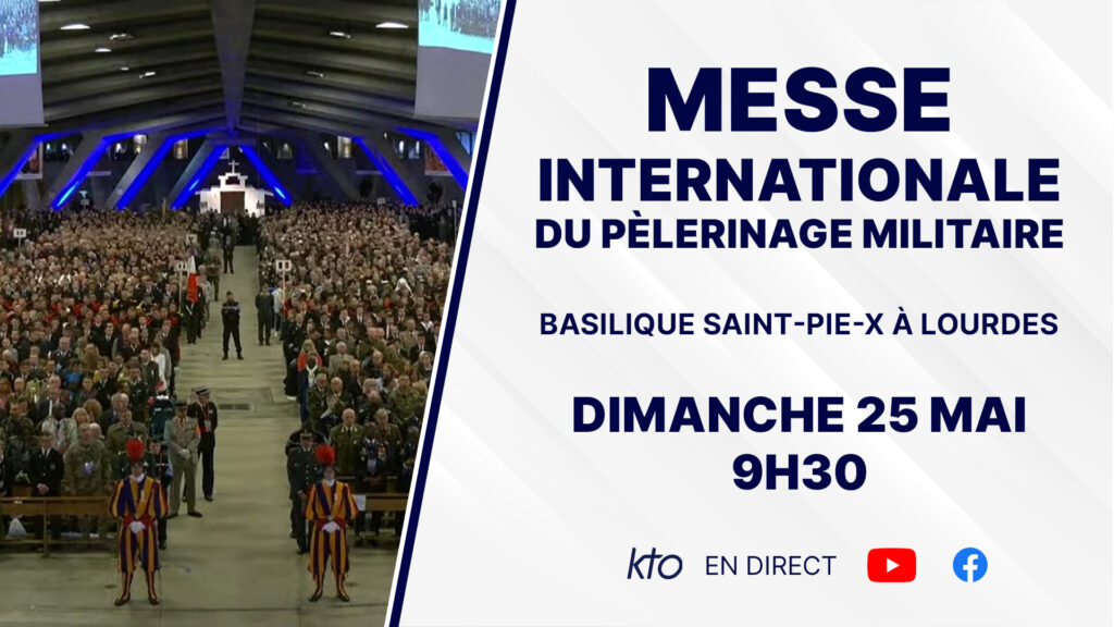Le dimanche 26 mai : 10h Messe internationale du Pèlerinage militaire international en direct de Lourdes (traduction en français).