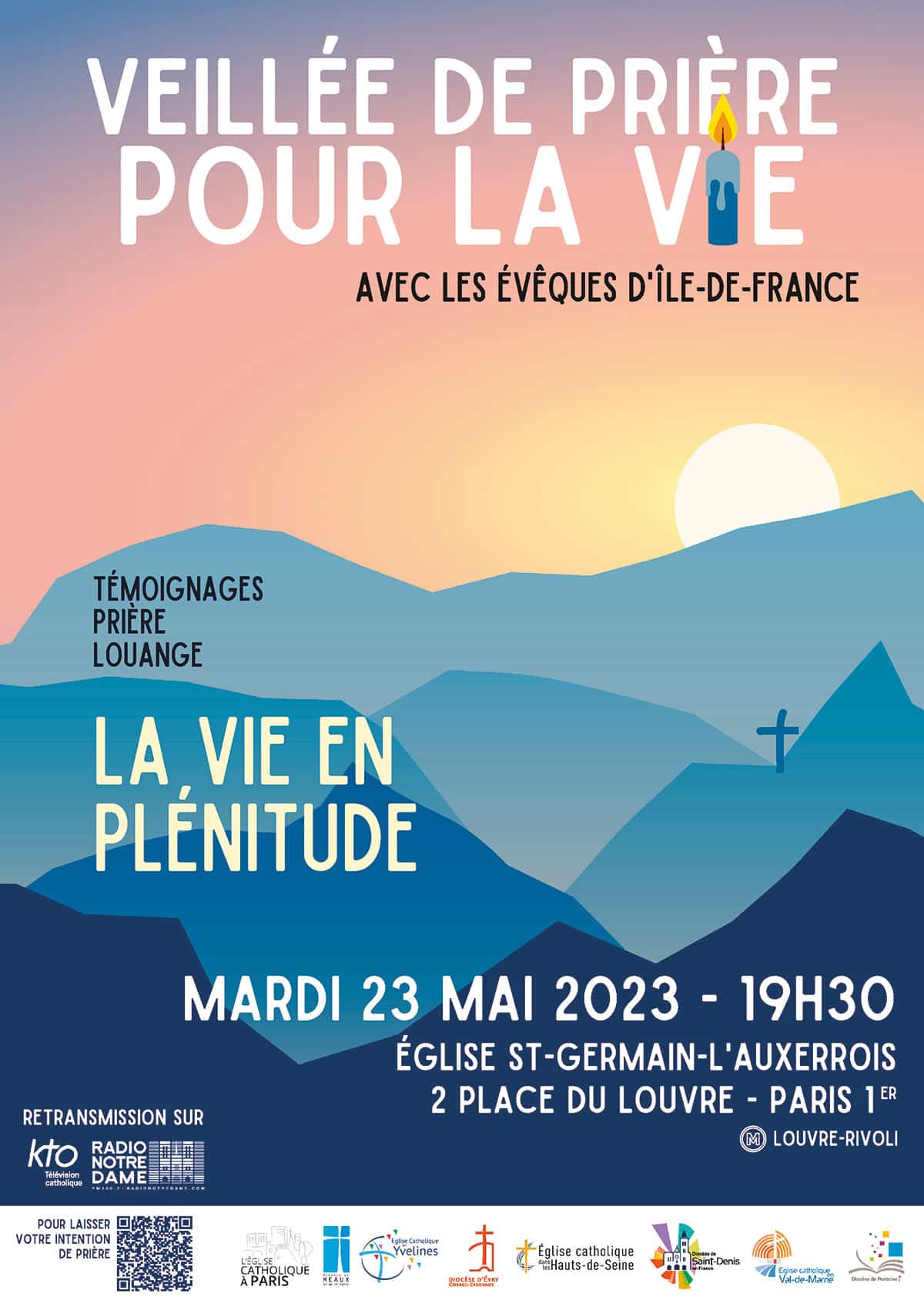 À l’initiative des évêques d’Île-de-France. Au programme de cette veillée : témoignages, prière et louange autour du thème « La vie en plénitude ». Avec : Louis Bouffard, jeune de 22 ans atteint de myopathie qui témoignera de la richesse de sa vie ; Axelle Hubert qui, après avoir accompagné son mari atteint de sclérose latérale amyotrophique (maladie de Charcot), est maintenant accompagnante de la maladie et du deuil. Pour ceux qui ne peuvent pas participer, vous avez la possibilité de laisser votre intention sur le site www.notredamedeparis.fr/veillee-pour-la-vie-2023. Chaque intention sera déposée au pied de l’autel pendant la veillée, puis confiée à une congrégation religieuse par chaque diocèse. Production KTO Télévision.