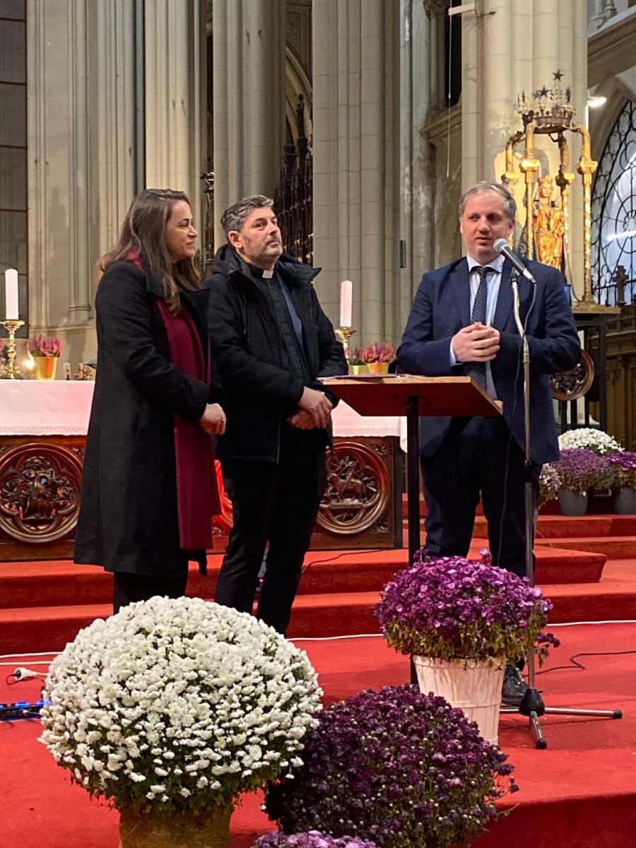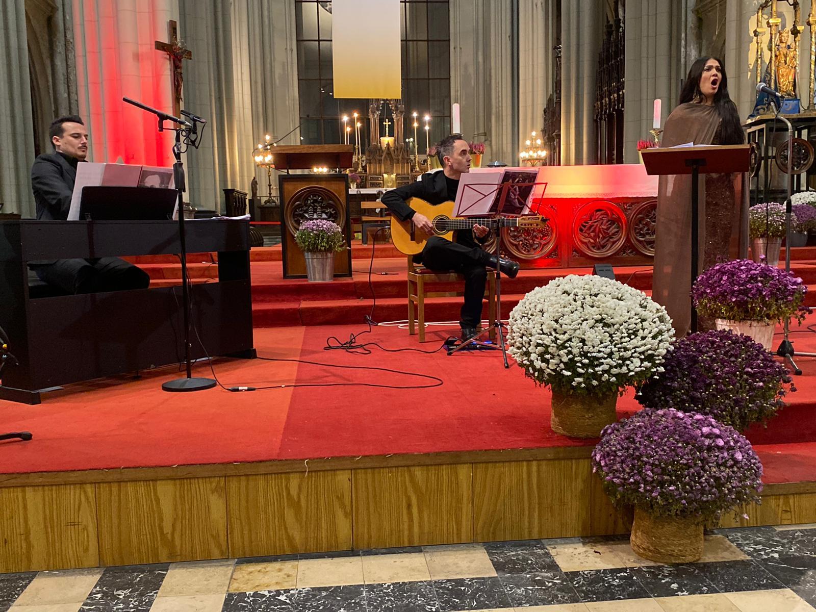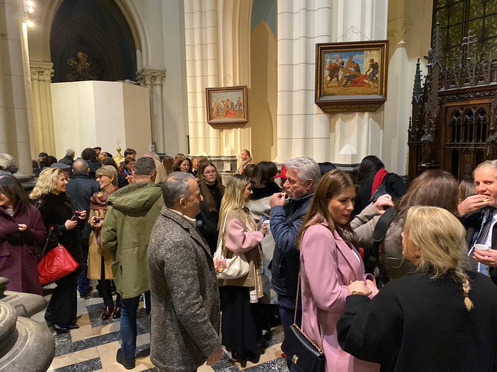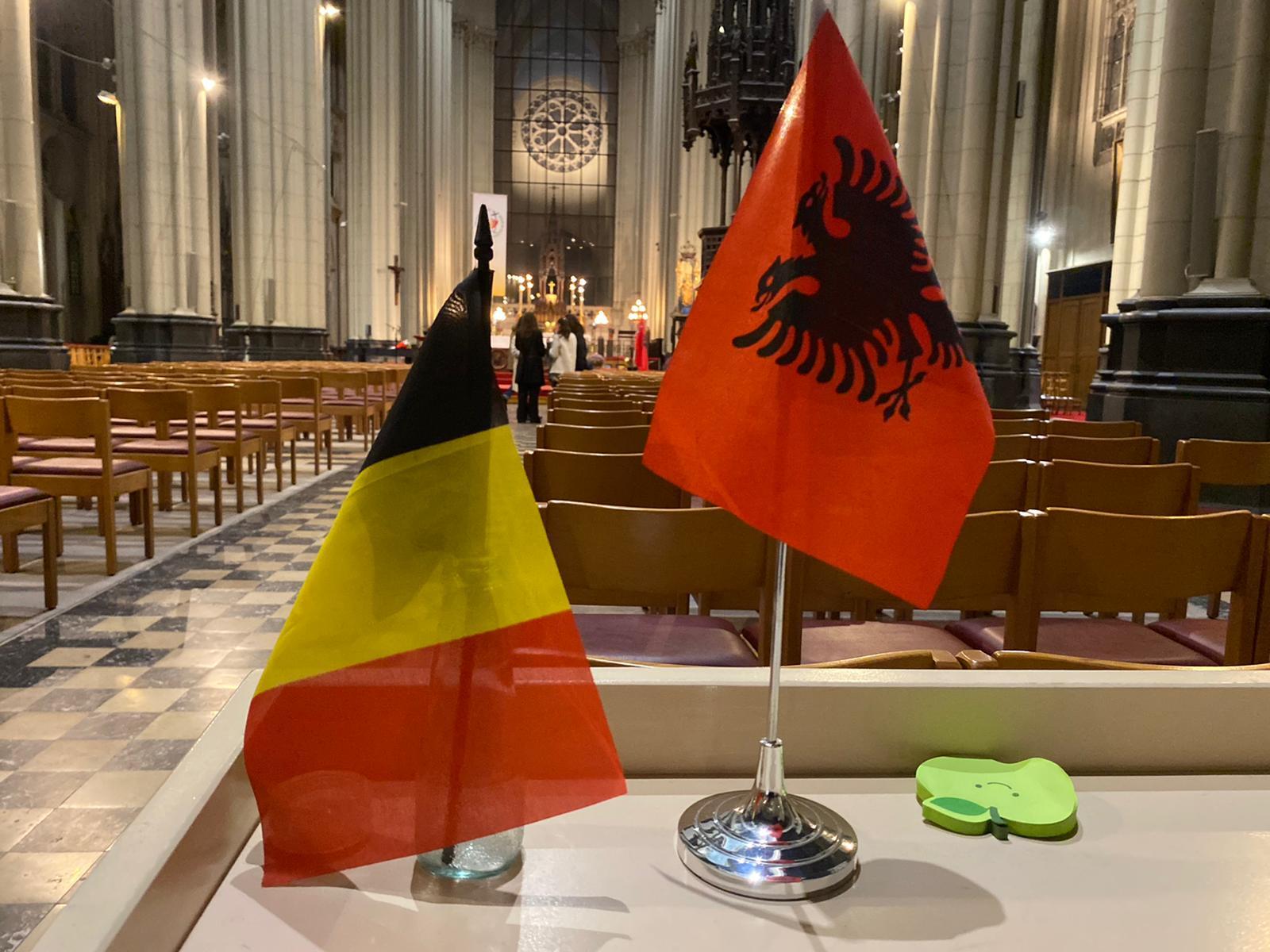 Sous le regard de sainte Mère Teresa, patronne de la communauté albanophone de Bruxelles, dont la statue se trouve à côté du chœur, les artistes ont interprété une quinzaine de chants et pièces de musique traditionnels. Le programme comprenait également l’Ave Maria de Franz Schubert ainsi que ceux de JS Bach et Charles Gounod et le Panis Angelicus de César Franck.