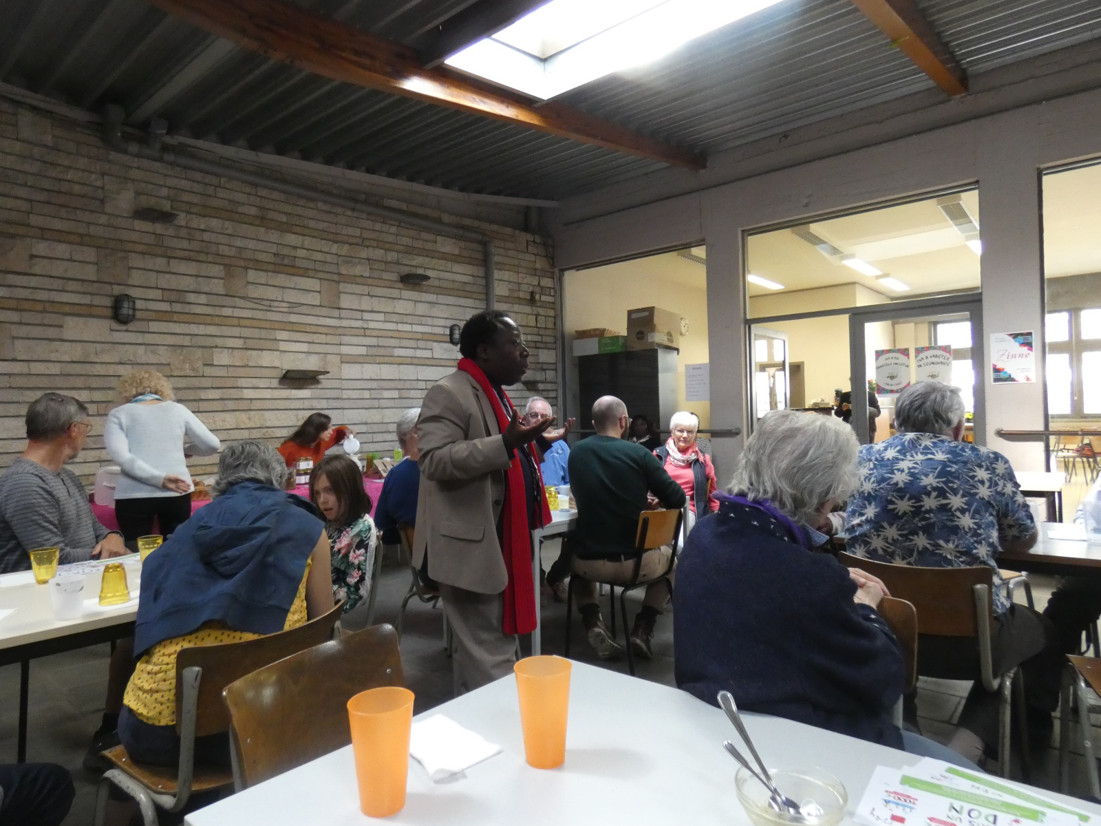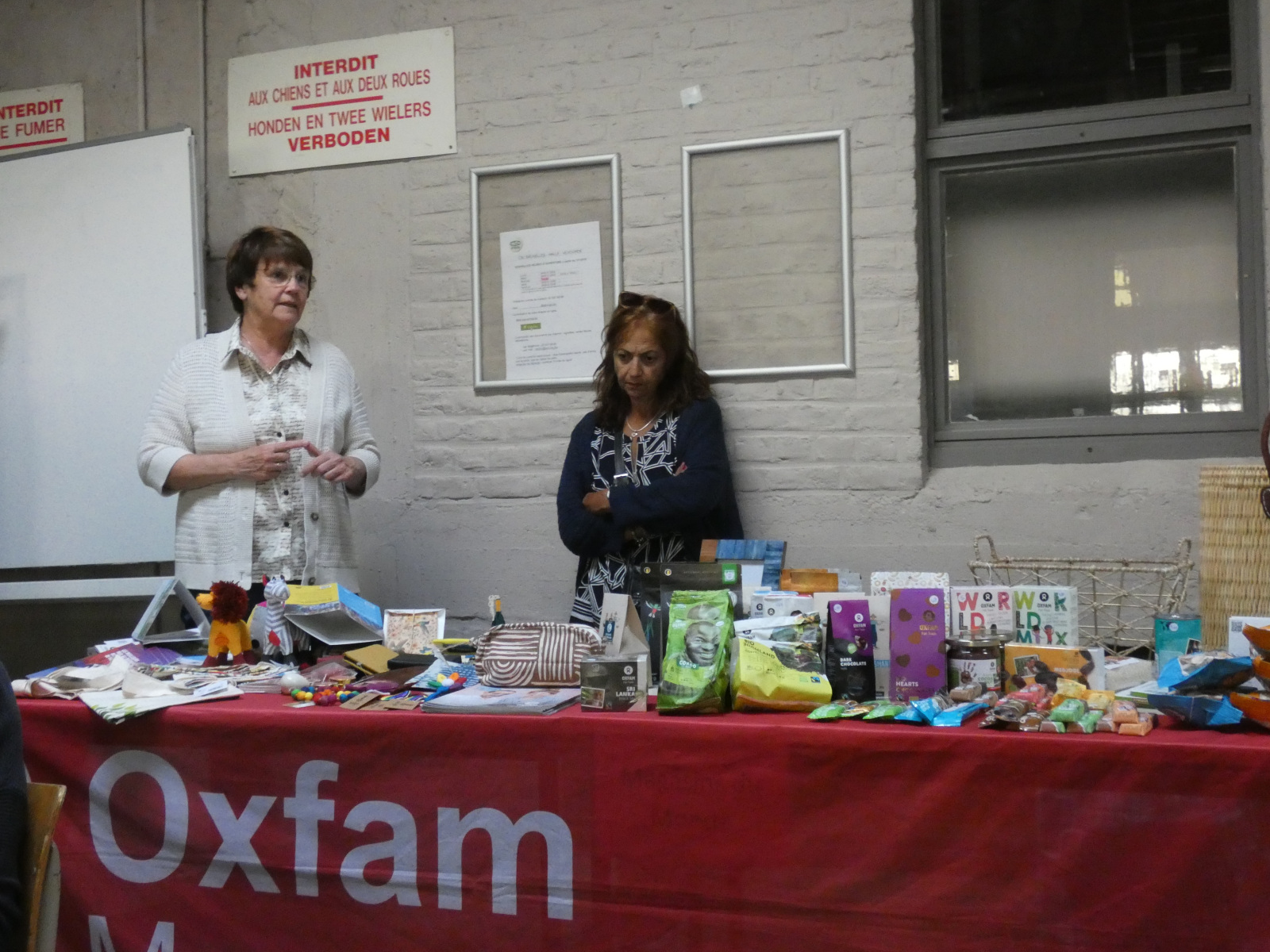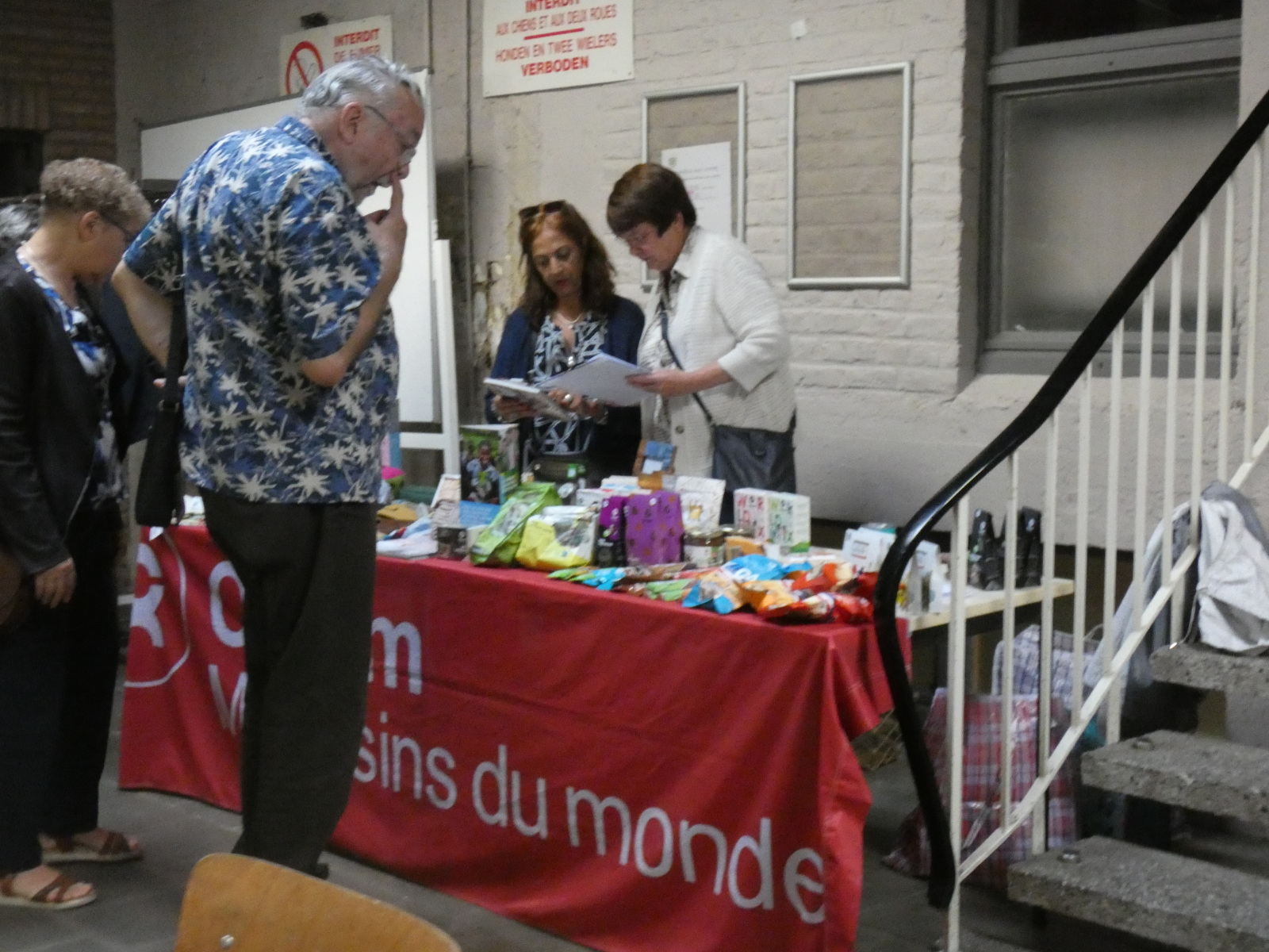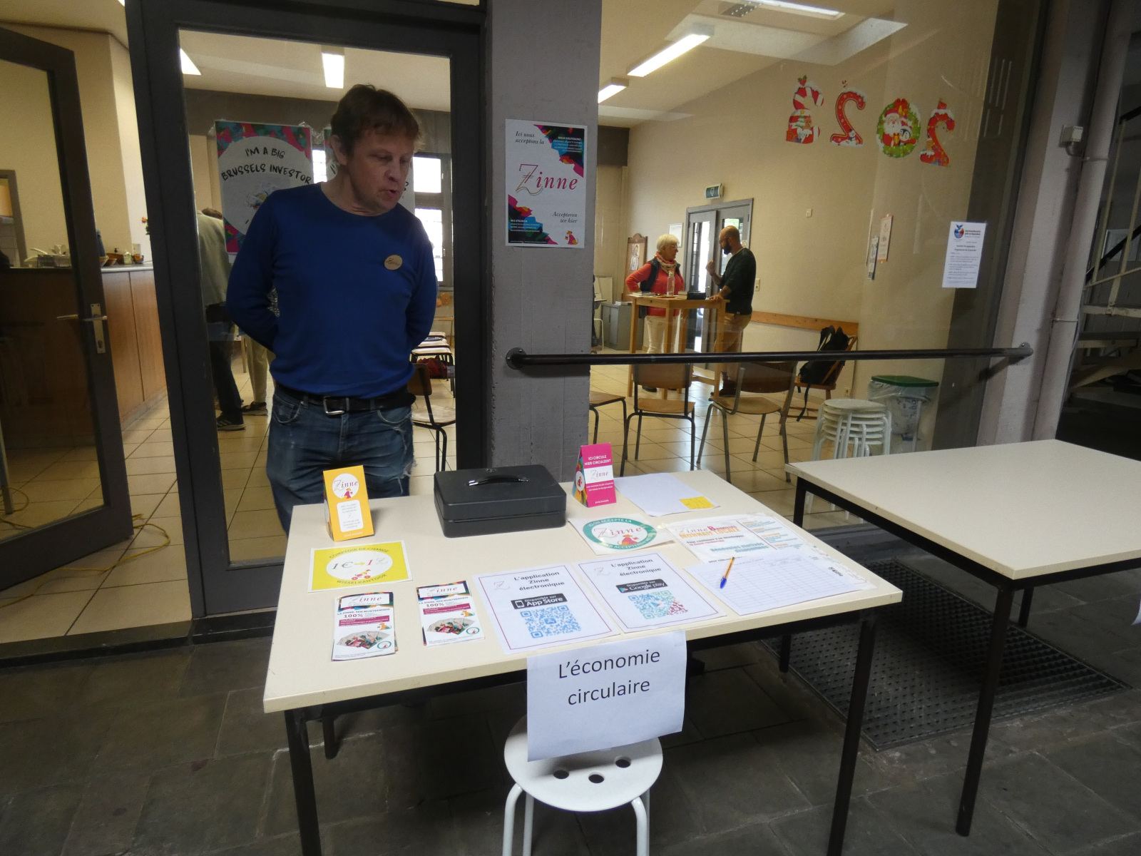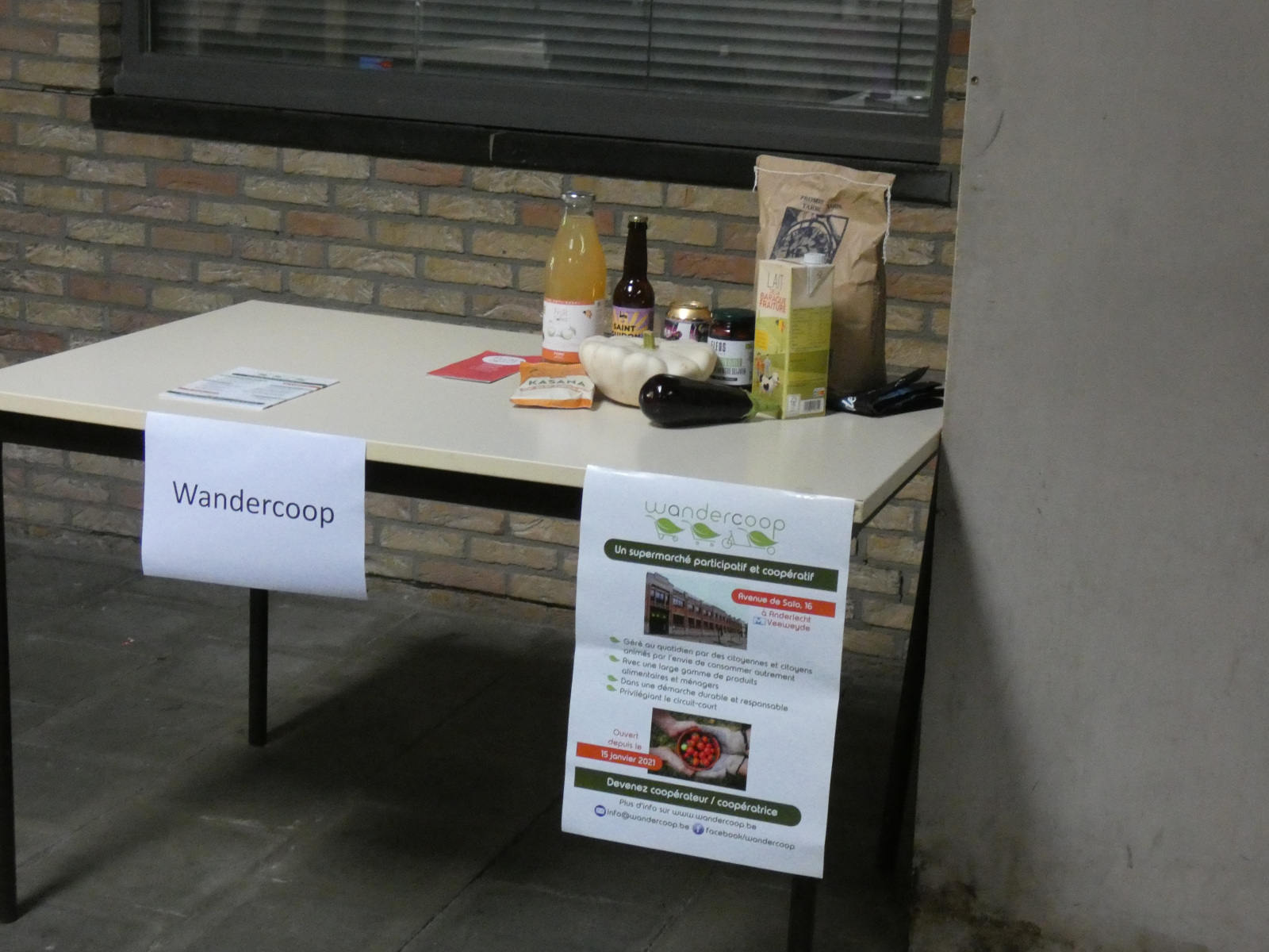 Enfin, après avoir bien mangé ensemble, chaque association a pu se présenter, ainsi que d’autres venues pour l’occasion. Chacune présentant brièvement son projet et les causes de leur mise en mouvement. Il y avait, outre les associations citées ci-dessus, des représentants de la Zinne, une monnaie locale de Bruxelles pour favoriser les commerces indépendants aux valeurs éthiques, écologiques et solidaires ; le magasin du monde Oxfam d’Anderlecht, pour favoriser des produits fair-trade et une économie de seconde-main ; l’association de défense de l’espace naturel « Sauvegardons Neerpede » qui venait pour informer et sensibiliser quant au projet de piscine d’aspect naturel dans un étang.