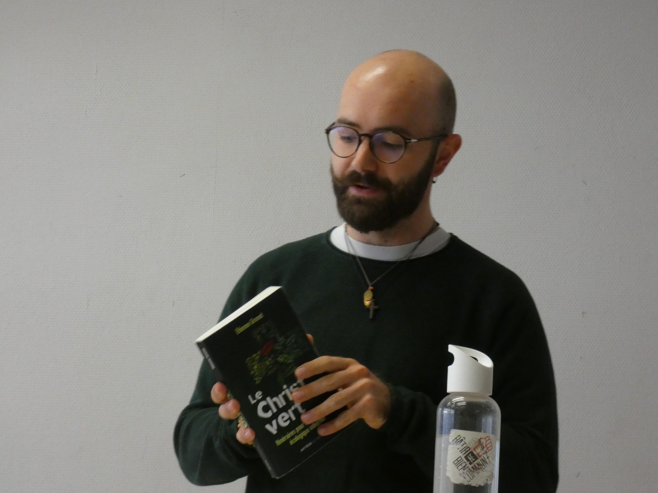 Cette intervention, qui retraçait la première partie du livre du p. Etienne Grenet Le Christ Vert, avait pour but d’ancrer les actions présentées par la suite dans la tradition chrétienne, dans cet appel à cultiver et à garder la Terre et dans cette lecture de relations transversales – nous ne vivons de fait pas des crises séparées, mais bien une seule et même crise, complexe et profonde, une crise socio-environnementale et spirituelle (Laudato Si 139).