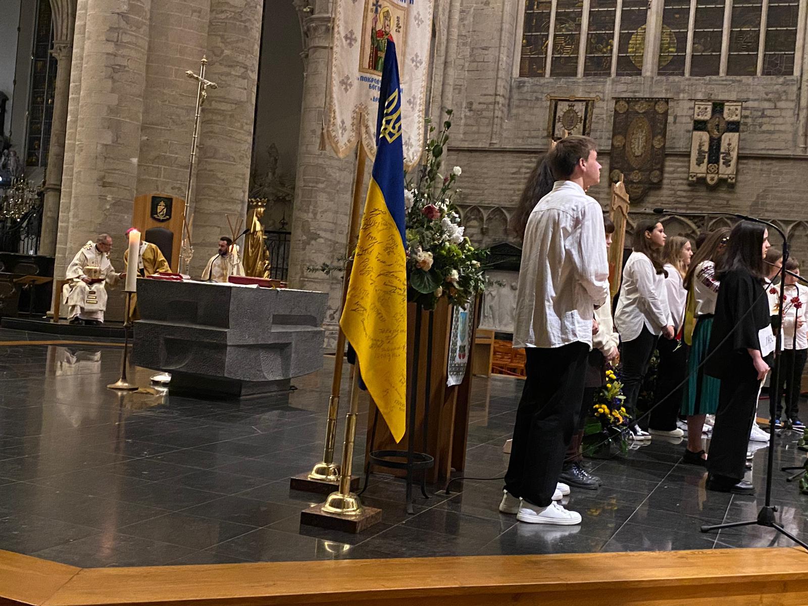La messe était en ukrainien. Dans son homélie en anglais, Mgr Lonchyna a remercié la Belgique pour la reconnaissance du génocide de l’Holodomor.
