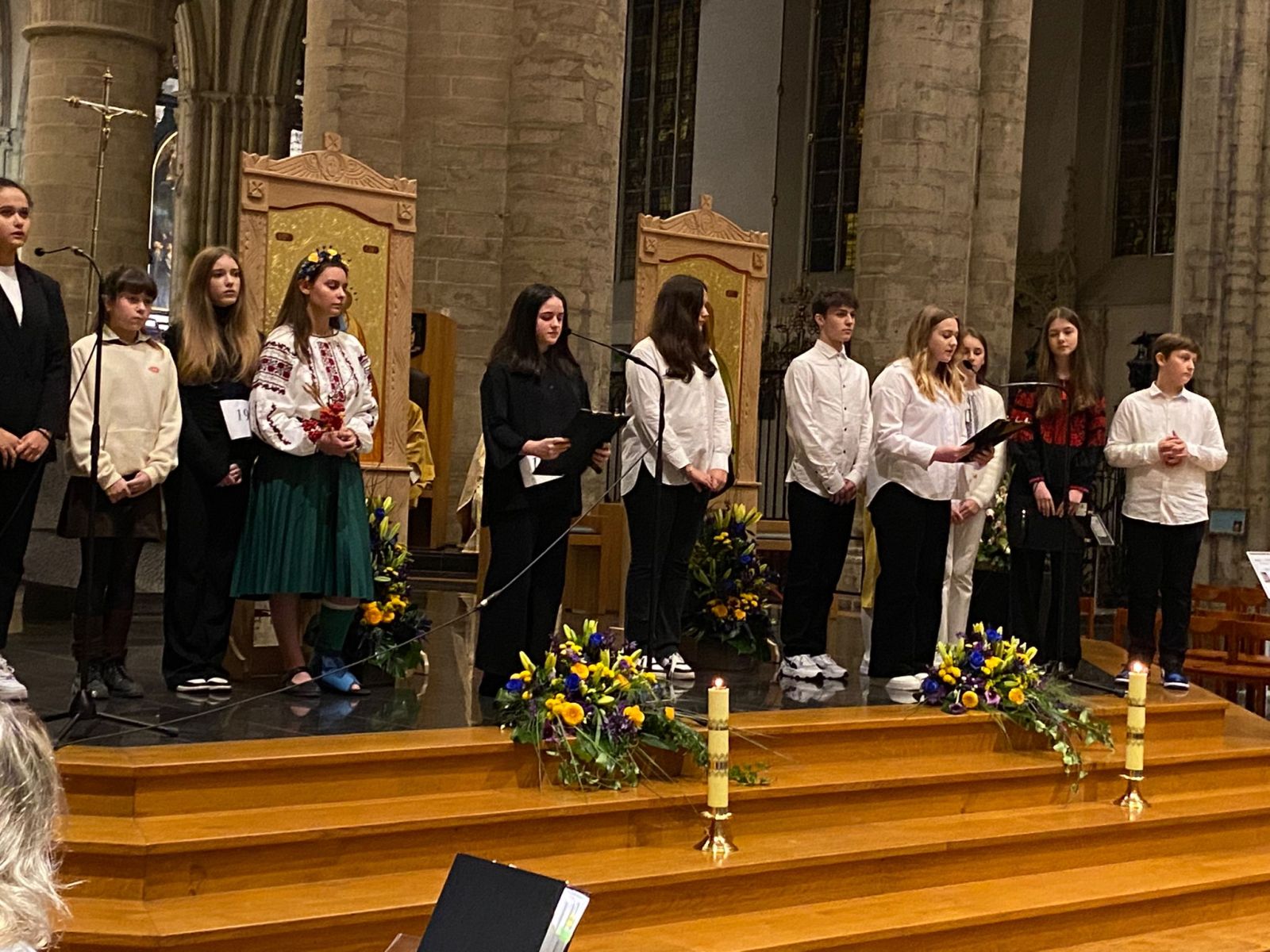 Après la messe, quelques jeunes ukrainiens ont récité des texte et joué des morceaux de musique de leur pays.