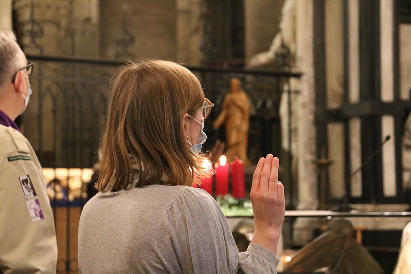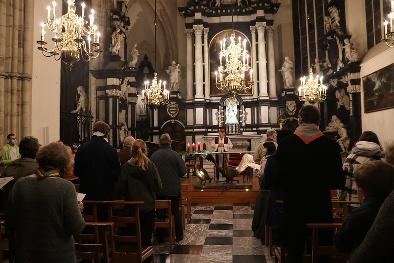Le 15 décembre avait lieu l’accueil de la flamme de la paix dans toutes les cathédrales francophones. Arrivée via une chaîne humaine depuis Bethléem jusqu’à nous, cette chaîne a continué à la Cathédrale des Saints Michel et Gudule à Bruxelles : amenée par les scouts et les guides à Mgr Kockerols, celui-ci l’a à son tour partagée à l’assemblée. Cette cérémonie était aussi l’occasion de se rassembler autour d’une lumière représentant l’espoir de Noël. Les scouts et guides francophones étaient présents, mais également les scouts et guides flamands, les pastorales des jeunes francophone et néerlandophone, la communauté portugaise, le service solidarité… Tous ces gens iront à leur tour apporter la flamme dans des lieux où la vie semble plus difficile.