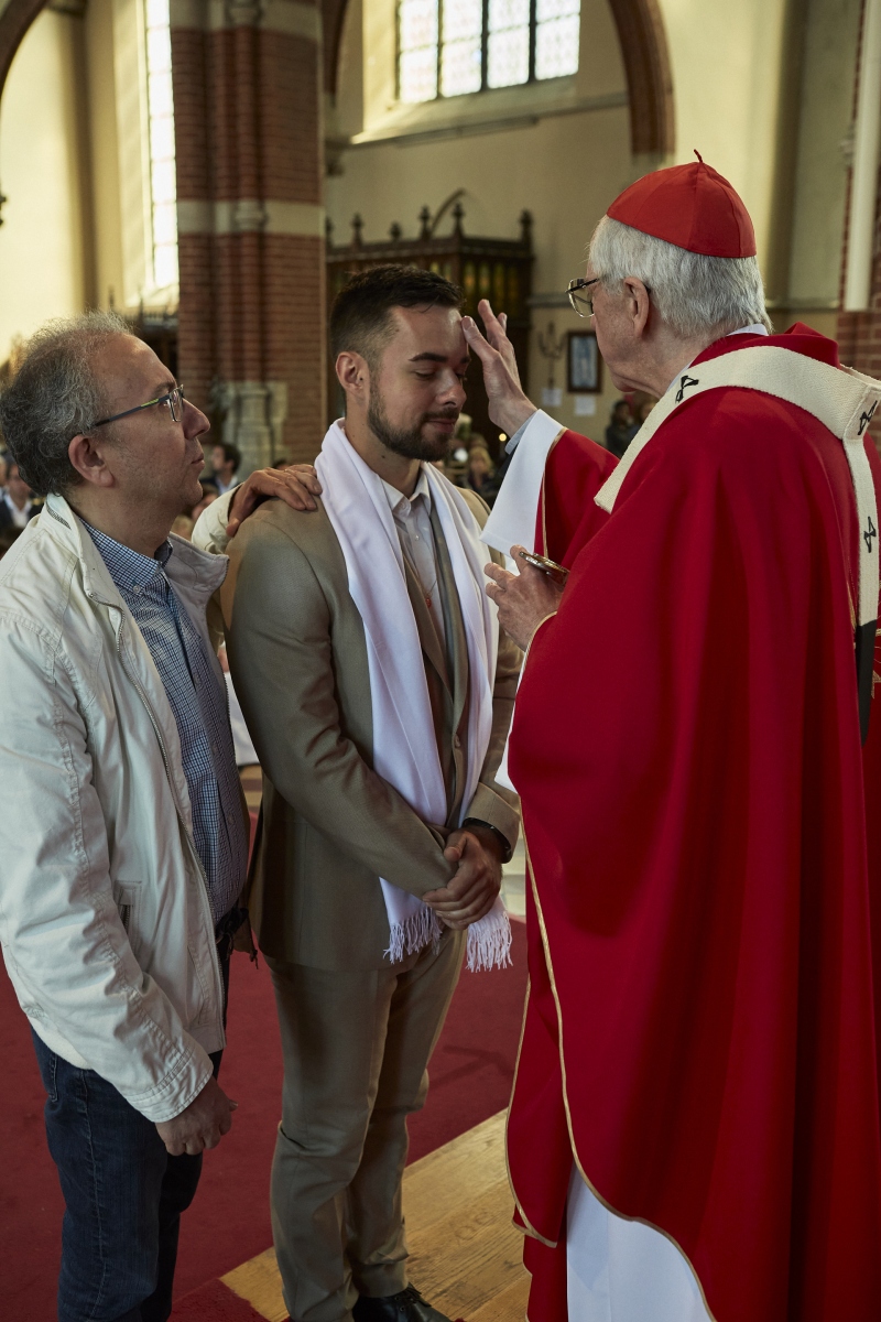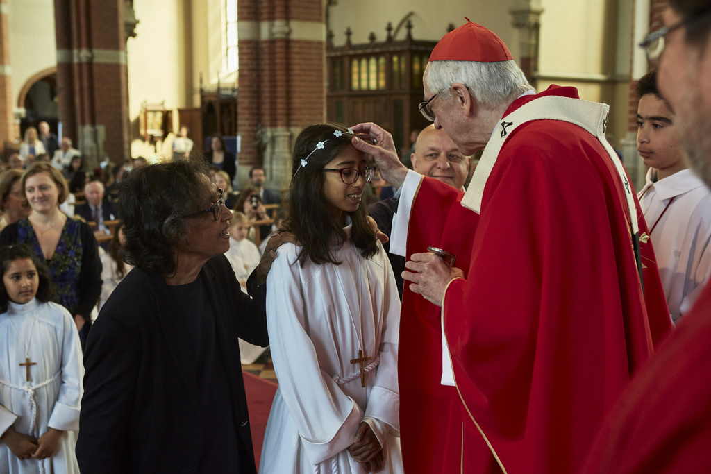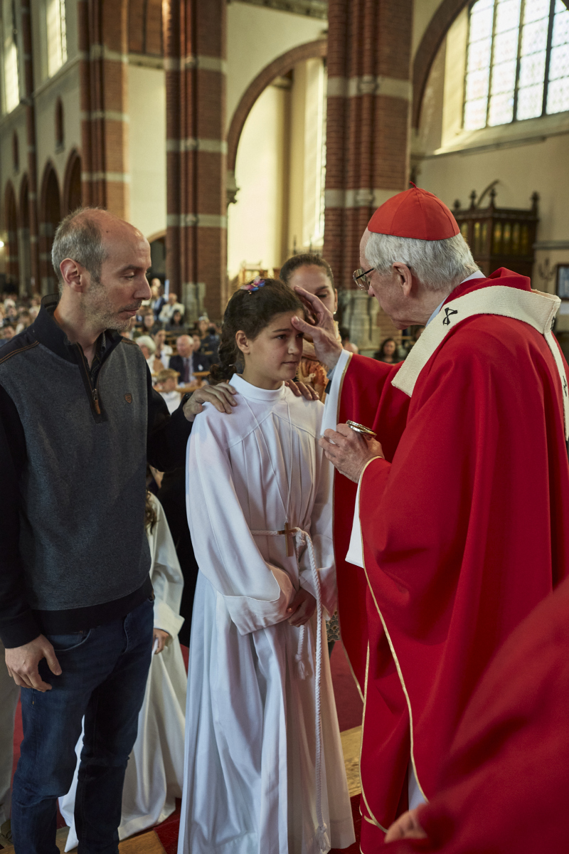 Ce dimanche 8 mai, notre Cardinal Jozef De Kesel est venu célébrer les Sacrements d’Initiation Chrétienne à Saint-Antoine. Des jeunes et des adultes ont reçu des mains de notre Cardinal le Sacrement de Confirmation et ont communié pour la première fois, en présence d’une assemblée nombreuse et heureuse de rencontrer son pasteur en pleine forme.