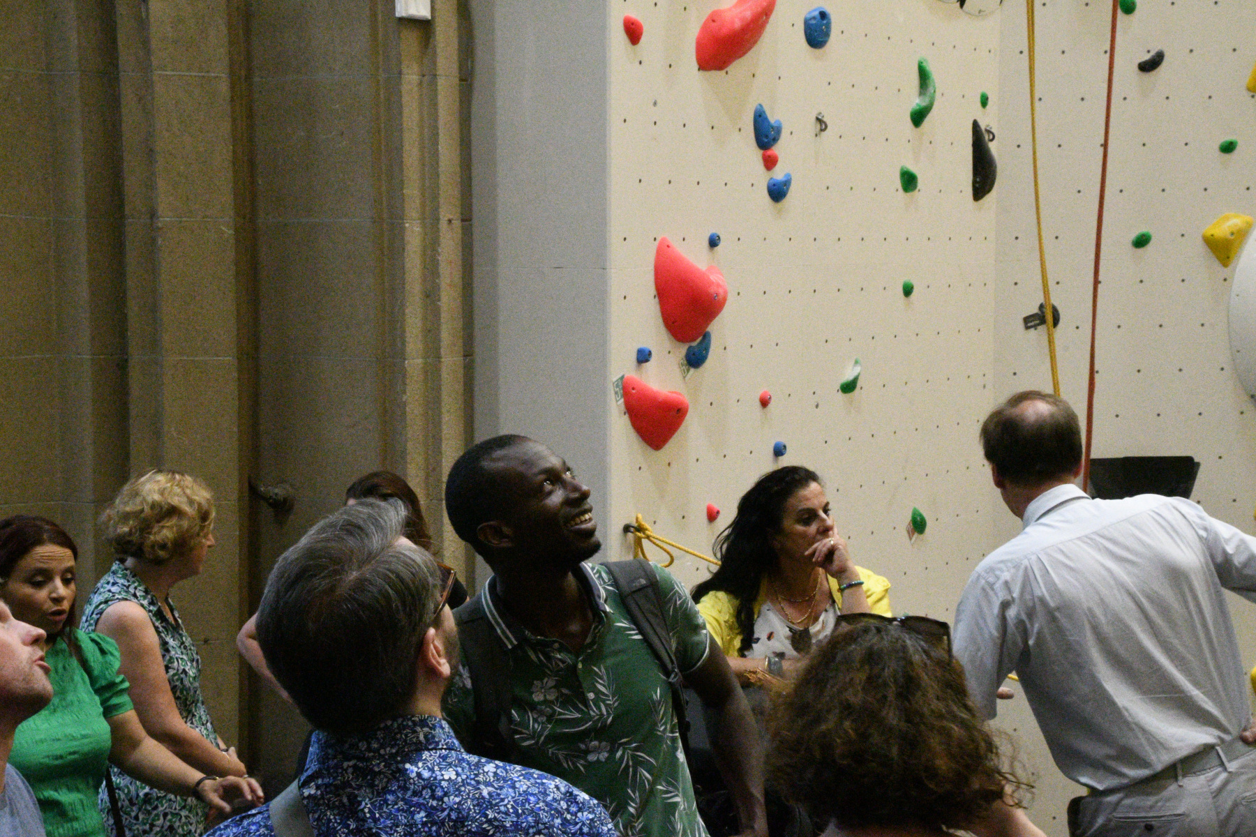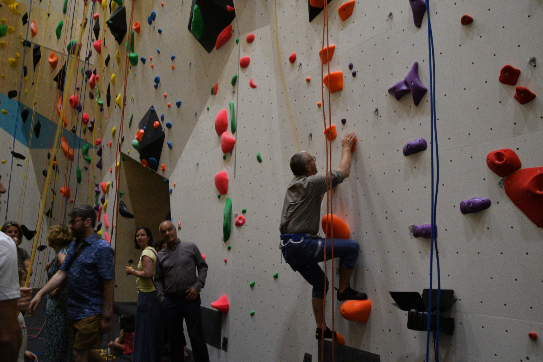 L’inauguration a débuté par la présentation du projet et de son histoire, mettant en valeur l’engagement et la passion des quatre grimpeurs. Les invités ont ensuite eu l’occasion de visiter les lieux, découvrir les murs d’escalade atteignant jusqu’à 18,5 mètres de hauteur et apprécier l’atmosphère unique du centre. Lors de l’inauguration, une démonstration d’escalade a été réalisée. La présence de la Bourgmestre de Forest et d’autres personnalités locales témoignait de l’importance de ce projet pour la communauté. Après la visite et la démonstration, les invités ont eu l’occasion de se retrouver autour d’un verre et de partager un moment convivial.