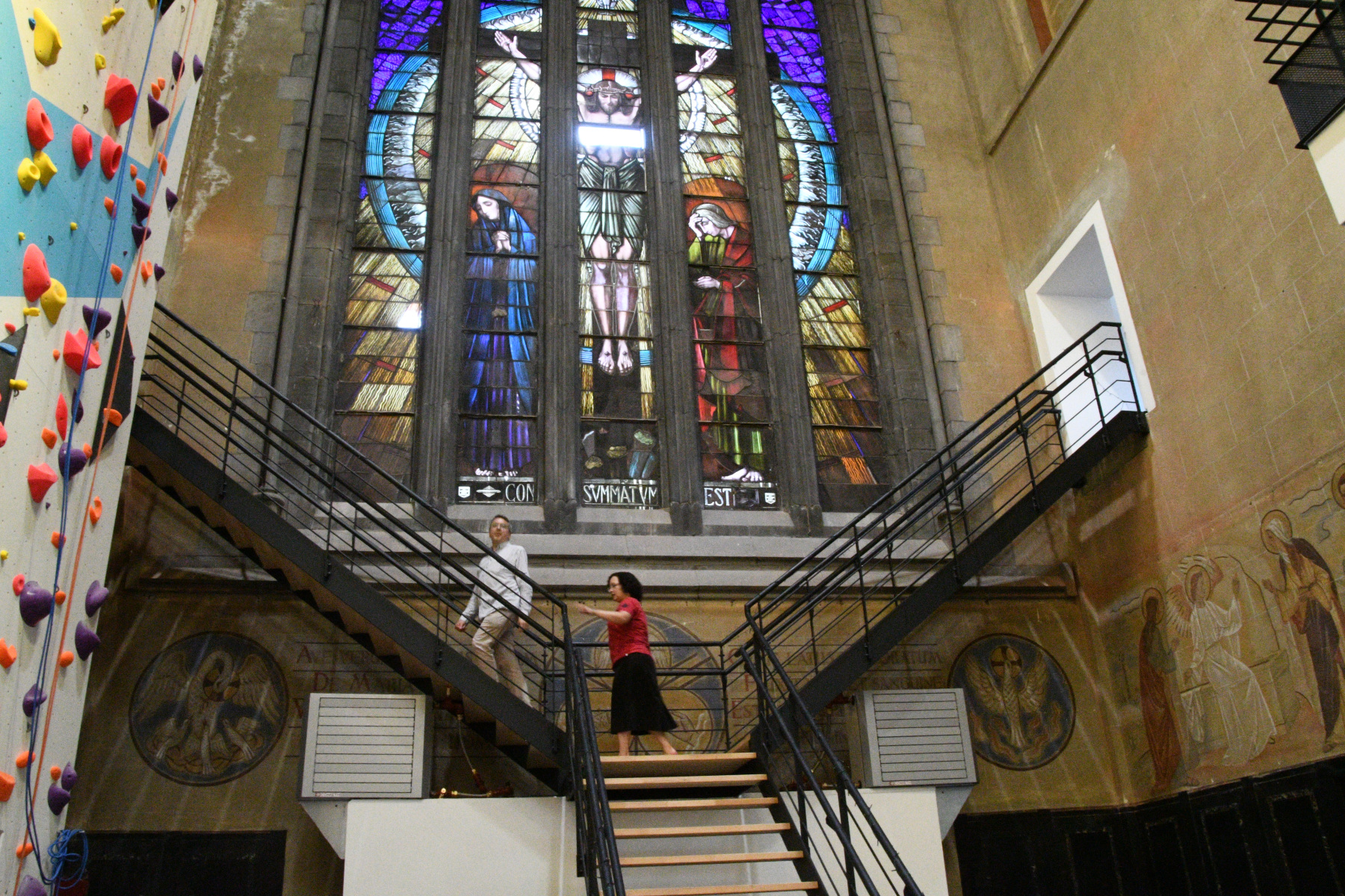 3 types d’escalade proposés : voies (escalade classique encordé), bloc (escalade sans corde au-dessus de gros mousses avec des murs limités à 4,5m de hauteur), et même escalade de vitesse. Il y a 2 salles dédiées aux initiations et aux cours enfants. Des cours parascolaires, des stages et des formules anniversaires sont proposés. Un mur connecté (kilterboard) vient compléter la salle. Enfin, un espace bar est situé dans les voûtes de la nef latérale, il pourra accueillir les grimpeurs après leur session pour une petite détente avant leur départ.