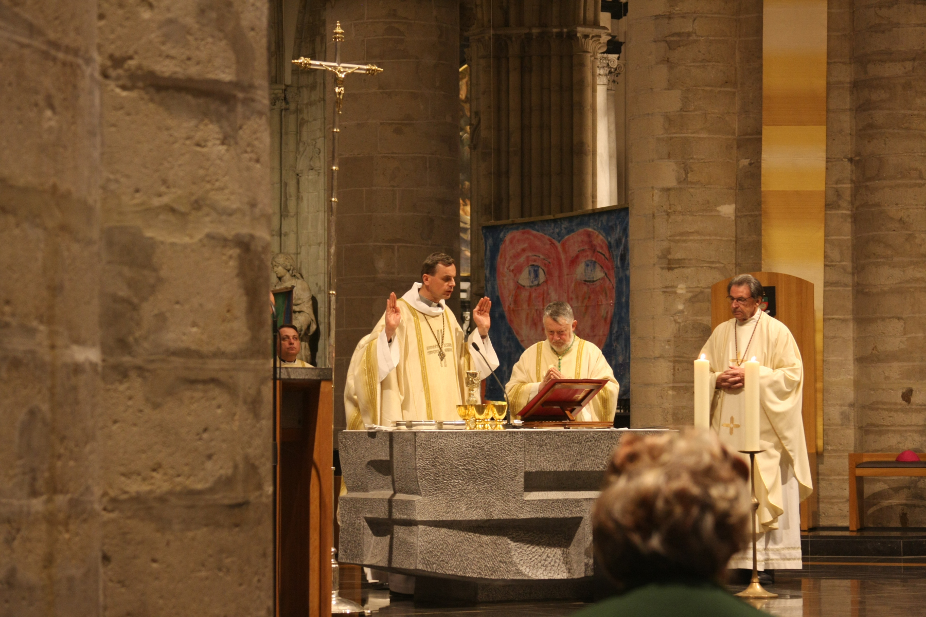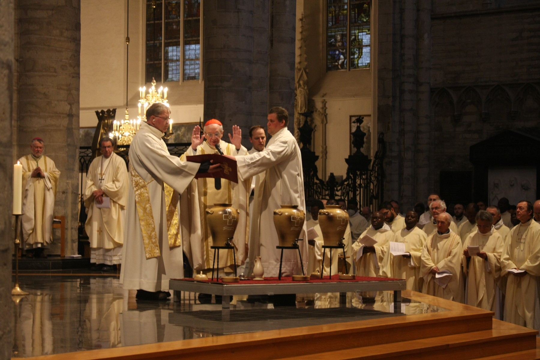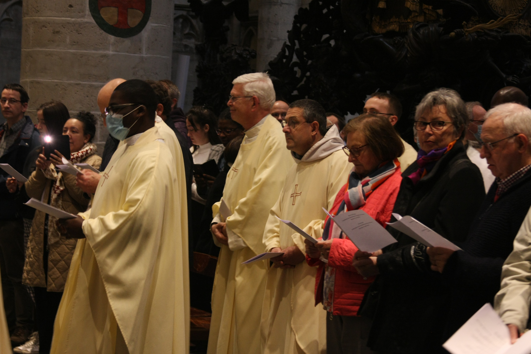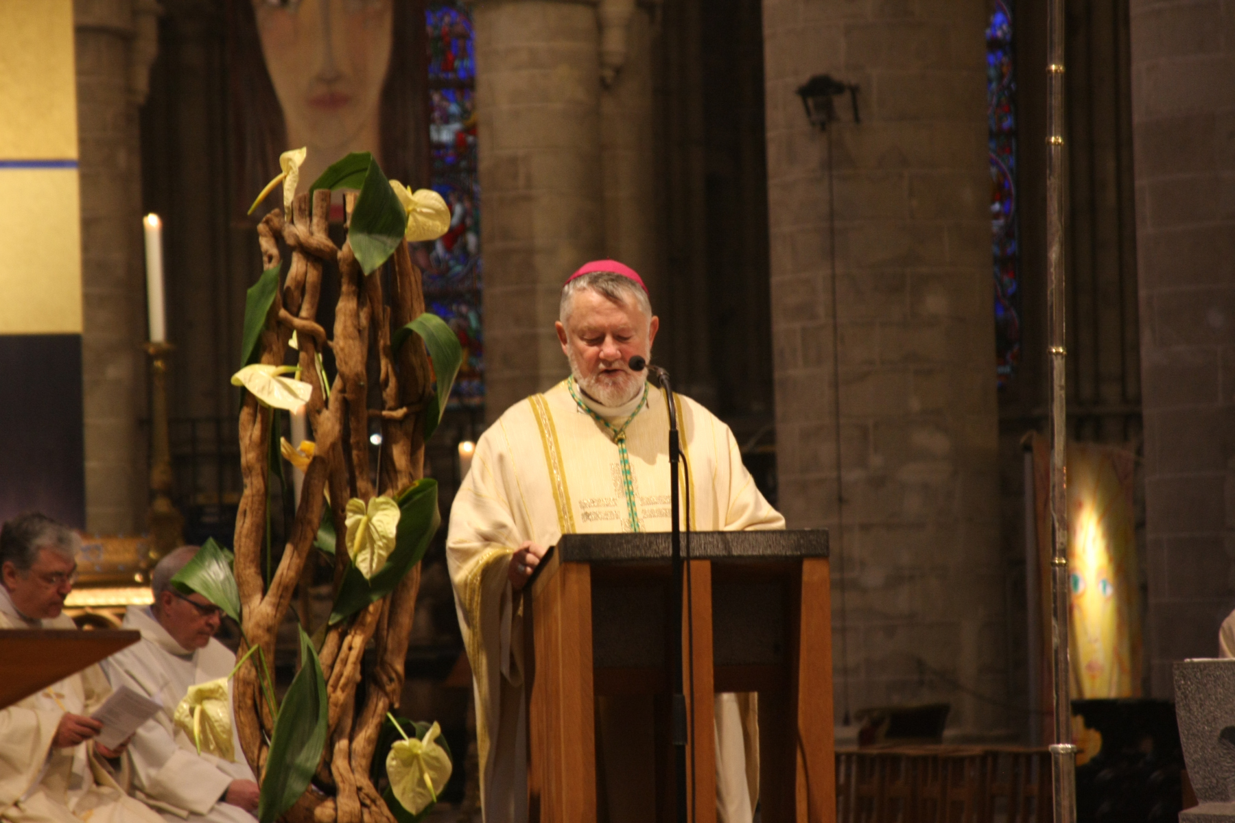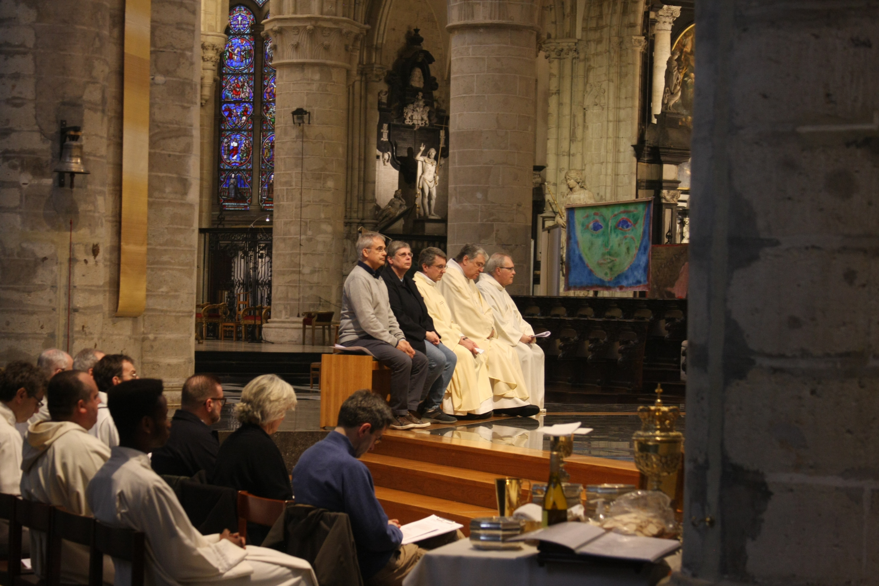 Hier, le 12 avril, le Cardinal Jozef De Kesel a présidé la messe chrismale à la Cathédrale Saints-Michel-et-Gudule de Bruxelles. Il était assisté par mgr Kockerols, évêque auxiliaire de Bruxelles. La cathédrale était comble – certaines personnes étaient debout, faute de place assise – pour accueillir notre évêque titulaire pour la première fois depuis deux ans.