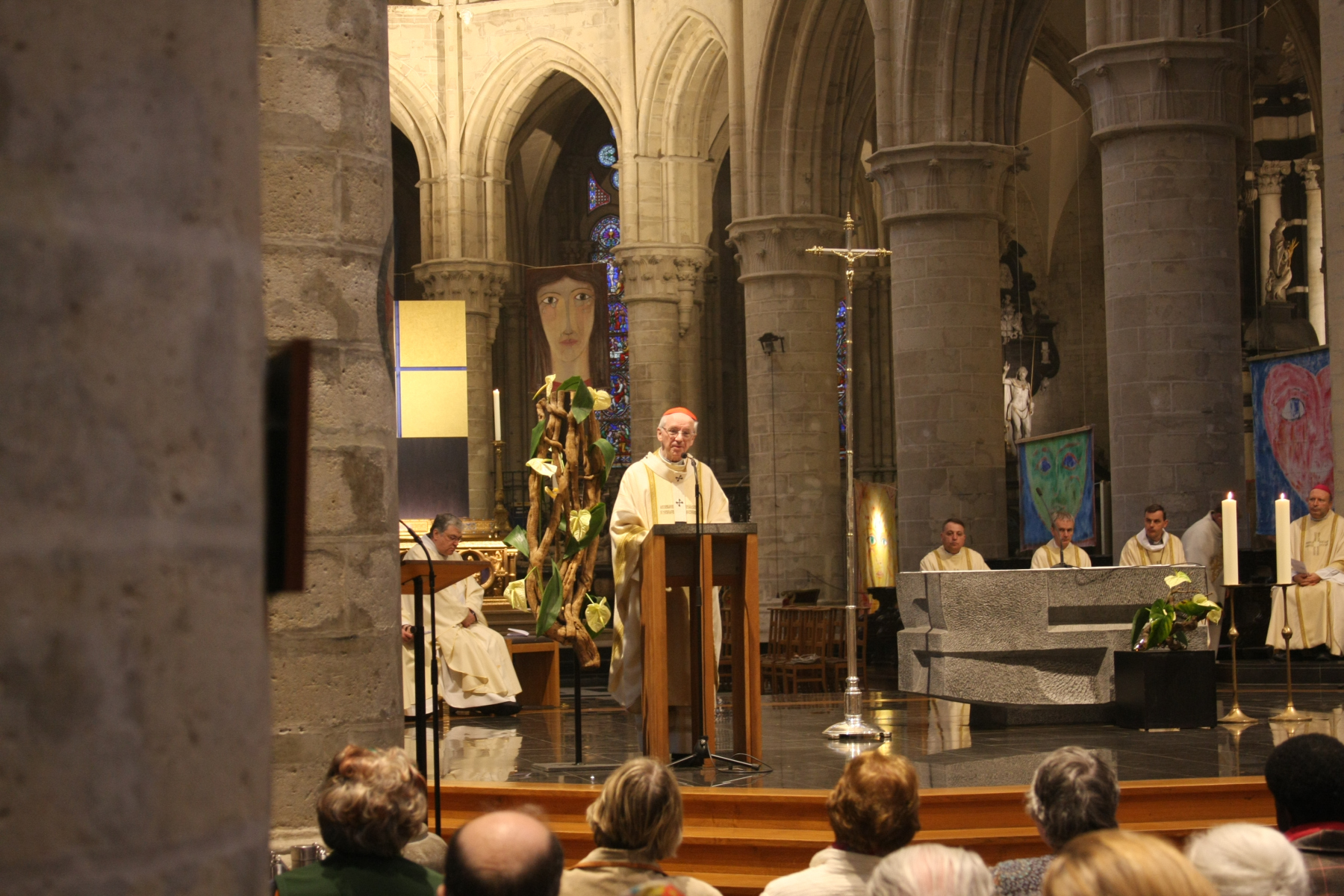 Après la communion, monseigneur Kockerols a pris spontanément la parole. S’adressant au Cardinal, il a dit: « Après deux ans, je suis heureux de vous revoir dans votre cathédrale« . En effet, cette période a été marquée par la pandémie mais aussi par la lutte contre un cancer pour mgr De Kesel. Ce dernier a, lui aussi, pris la parole pour partager sa gande joie d’être parmi nous et remercier chacun pour ses prières. Il a été très chaleureusement applaudi par le millier de personnes présentes.