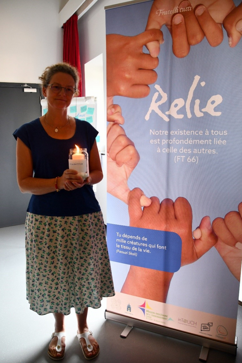Une expo « Fratelli tutti » a été inaugurée lors de cette messe. 8 magnifiques panneaux sont prêts à circuler dans les écoles pour travailler avec les élèves ce thème de l’espérance en lien avec la fraternité et l’encyclique du pape François « Fratelli tutti ».
