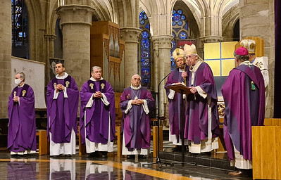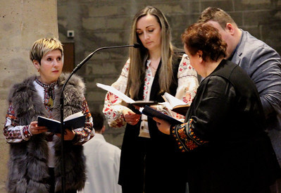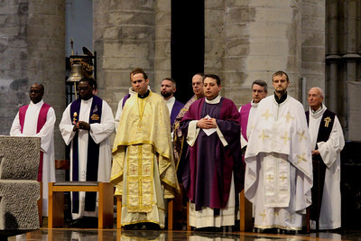 Dimanche dernier, le 13 mars, une messe pour la paix a été célébrée dans la cathédrale Sts-Michel-et-Gudule à Bruxelles. Elle a été présidée par le cardinal Jozef De Kesel, en concélébration avec Mgr Hlib Lonchyna, administrateur apostolique de l’Eparchie Saint-Vladimir-le-Grand pour les Ukrainiens de rite byzantin en France, et mgr Franco Coppola, nonce apostolique. Les évêques auxiliaires mgr Jean Kockerols et Jean-Luc Hudsyn ont également concélébré, ainsi que des prêtres des églises catholique et gréco-catholique ukrainiennes. Des prêtres polonais et roumains étaient également présents dans le choeur ainsi que le père Medik, coresponable de la communauté ukrainienne à Bruxelles. L’Eucharistie a été célébrée selon le rite latin, en trois langues (français, néerlandais et ukrainien). Une chorale ukrainienne a assuré l’animation musicale. La cathédrale était pleine.