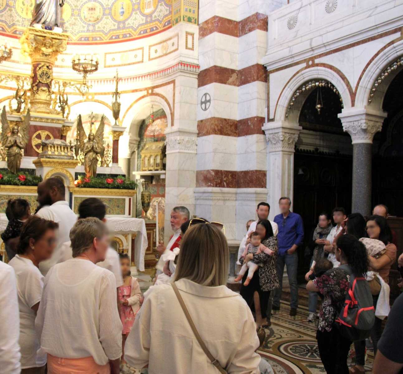 C’est une tradition marseillaise de venir présenter les tout petits à la Bonne Mère et lui demander protection et grâces divines dans une ambiance détendue, conviviale, et de prière. Ce samedi le plus petit bébé avait 2 jours et le plus grand 8 mois.