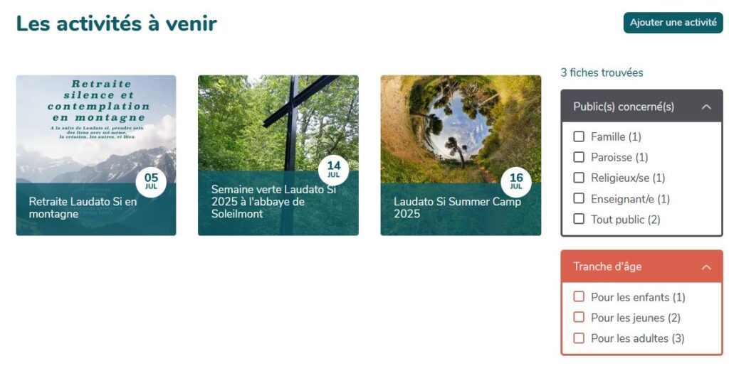 Inspiré par l’appel à “sauvegarder notre Maison Commune”, le site propose une série de ressources pour s’engager, seul ou en groupe, sur le chemin des 7 objectifs Laudato Si’. Les internautes y trouveront également une carte interactive répertoriant des initiatives locales : habitats groupés, monastères, paroisses ou associations engagées dans une démarche d’écologie intégrale.