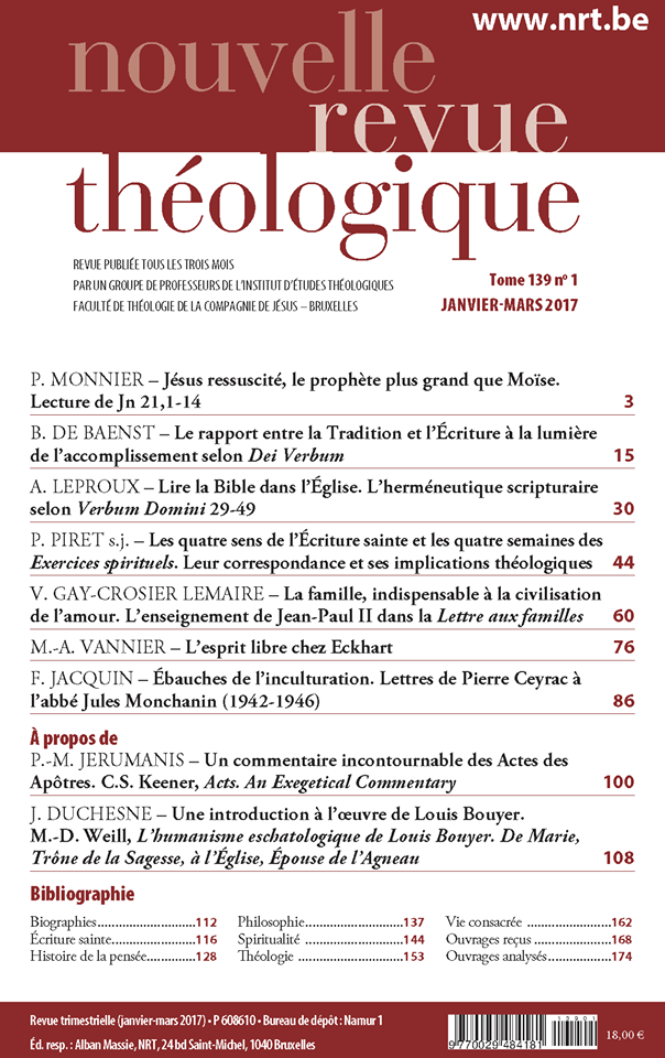 La NRT est une revue trimestrielle publiée par un groupe de professeurs de l’Institut d’études théologiques, Faculté de théologie de la Compagnie de Jésus à Bruxelles.