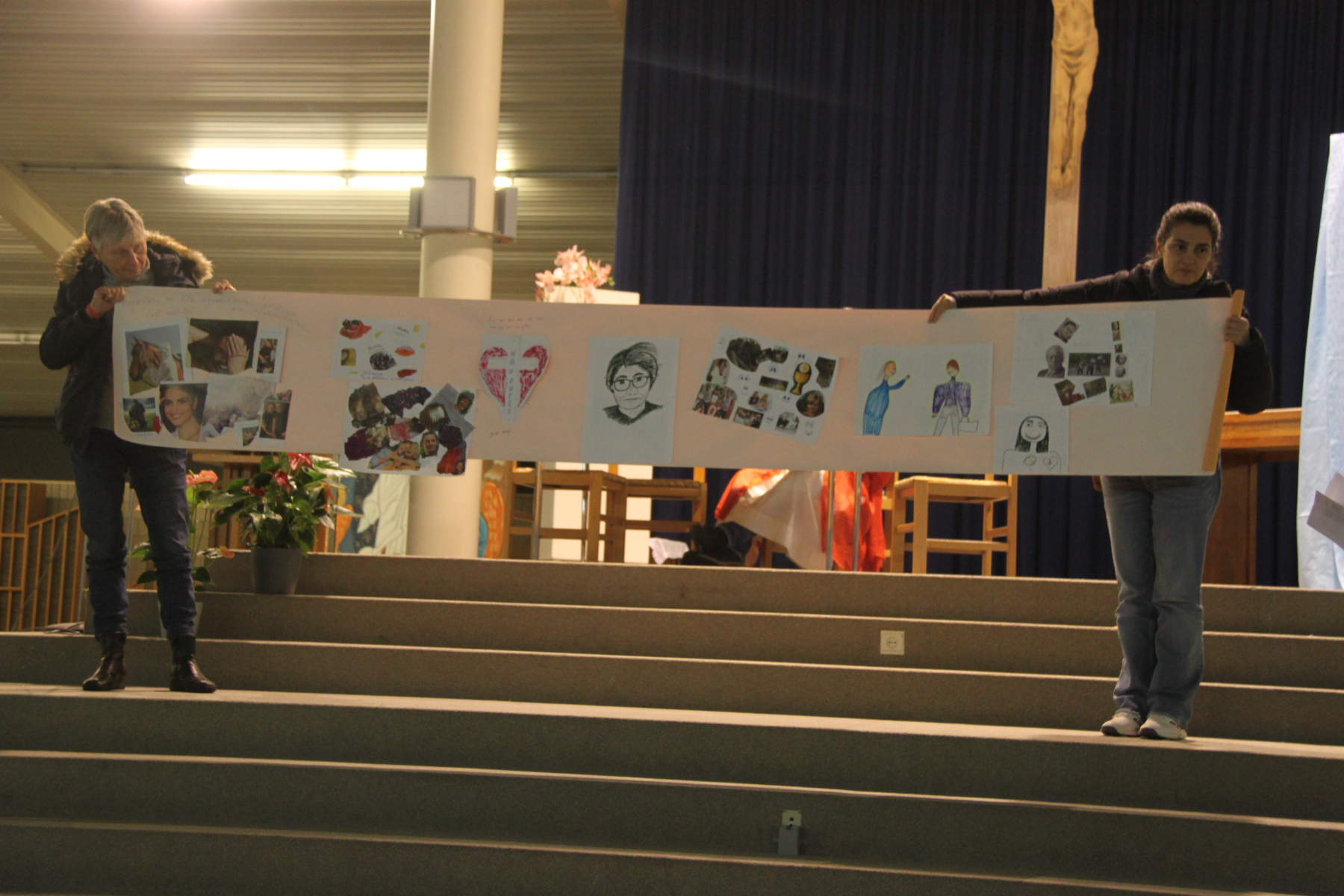 Grâce à divers ateliers, spirituels et créatifs, ils ont pu s’exprimer sur leur expérience de regards qui blessent et de regards qui relèvent. Lors de la veillée, « Tobie » accompagné de son guide, Raphaël a recueilli les divers témoignages et a révélé un Christ aux mille visages. En effet, nous sommes tous appelés à être témoins du Christ et à être des anges « Raphaël » les uns pour les autres. Pendant cette veillée, Simon, un bruxellois, a fait un témoignage de son chemin alors qu’il est maintenant salarié au service de ses frères au sein d’un service d’aide de première ligne et baptisé : il a ouvert un chemin inspirant.