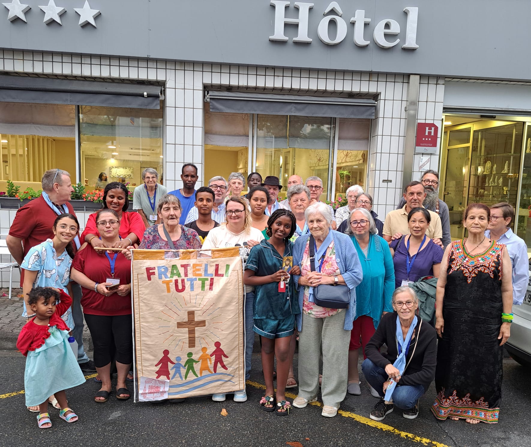 Le collectif s’est choisi un nom : Fratelli Tutti. Une bannière brodée par les carmélites de Bruxelles les a accompagnés tout au long du pèlerinage. « Les participants étaient fiers de la porter. Elle symbolisait notre unité et notre fraternité », souligne Marie-Françoise.