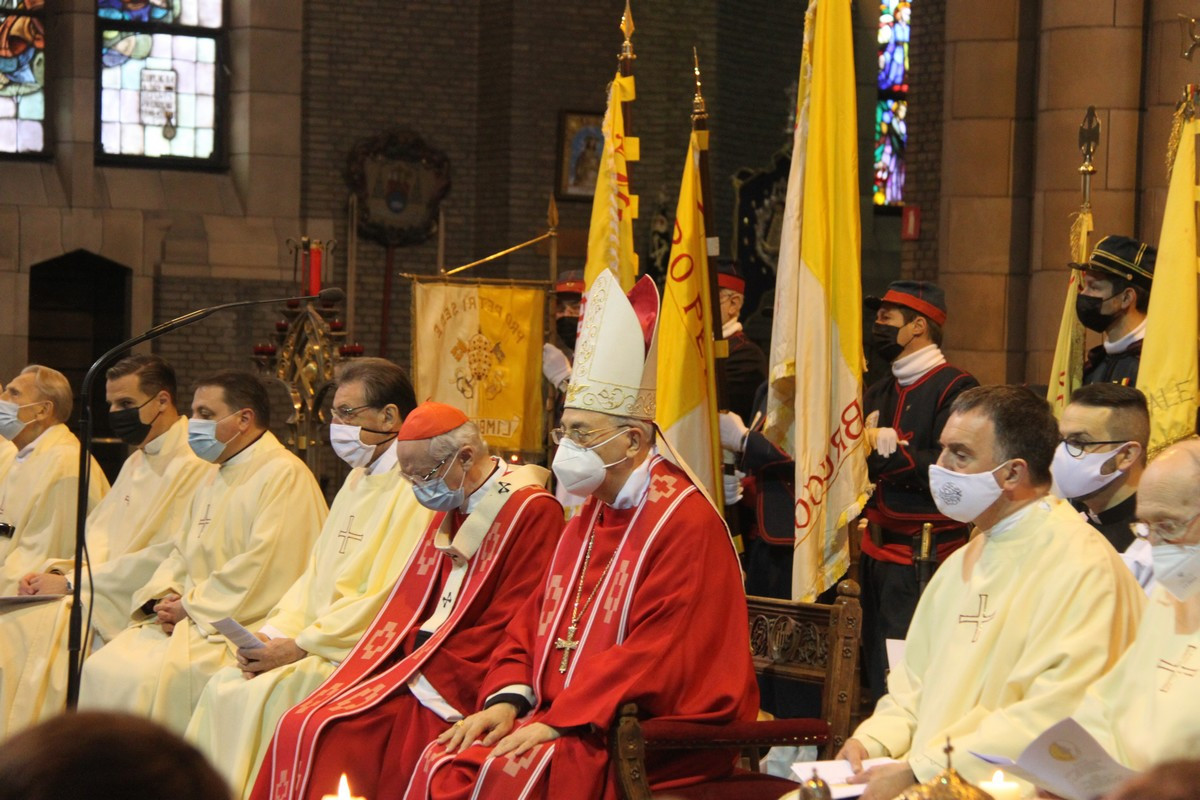 En présence de S.A.R. le prince Laurent, le cardinal Dominique Mamberti, envoyé spécial du pape François, le cardinal Jozef De Kesel, archevêque de Malines-Bruxelles, et plus de quinze prêtres et prélats ont célébré une messe pontificale à la Basilique de Koekelberg.
