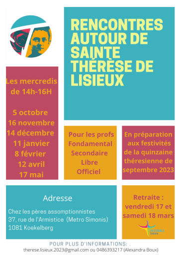 • 12 avril et 17 mai 2023 : pistes concrètes pour les écoles dans le cadre de la Quinzaine thérésienne