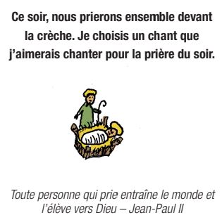 Chaque jour, un sticker à coller dans le calendrier pour peupler la crèche. Chaque jour, une petite carte à découper avec, d’un côté, une parole de la Bible ou d’un saint, et de l’autre, une action simple à réaliser pour apporter la paix autour de soi : dire bonjour à ses voisins, prendre des nouvelles d’une personne âgée, dire du bien, rendre service…