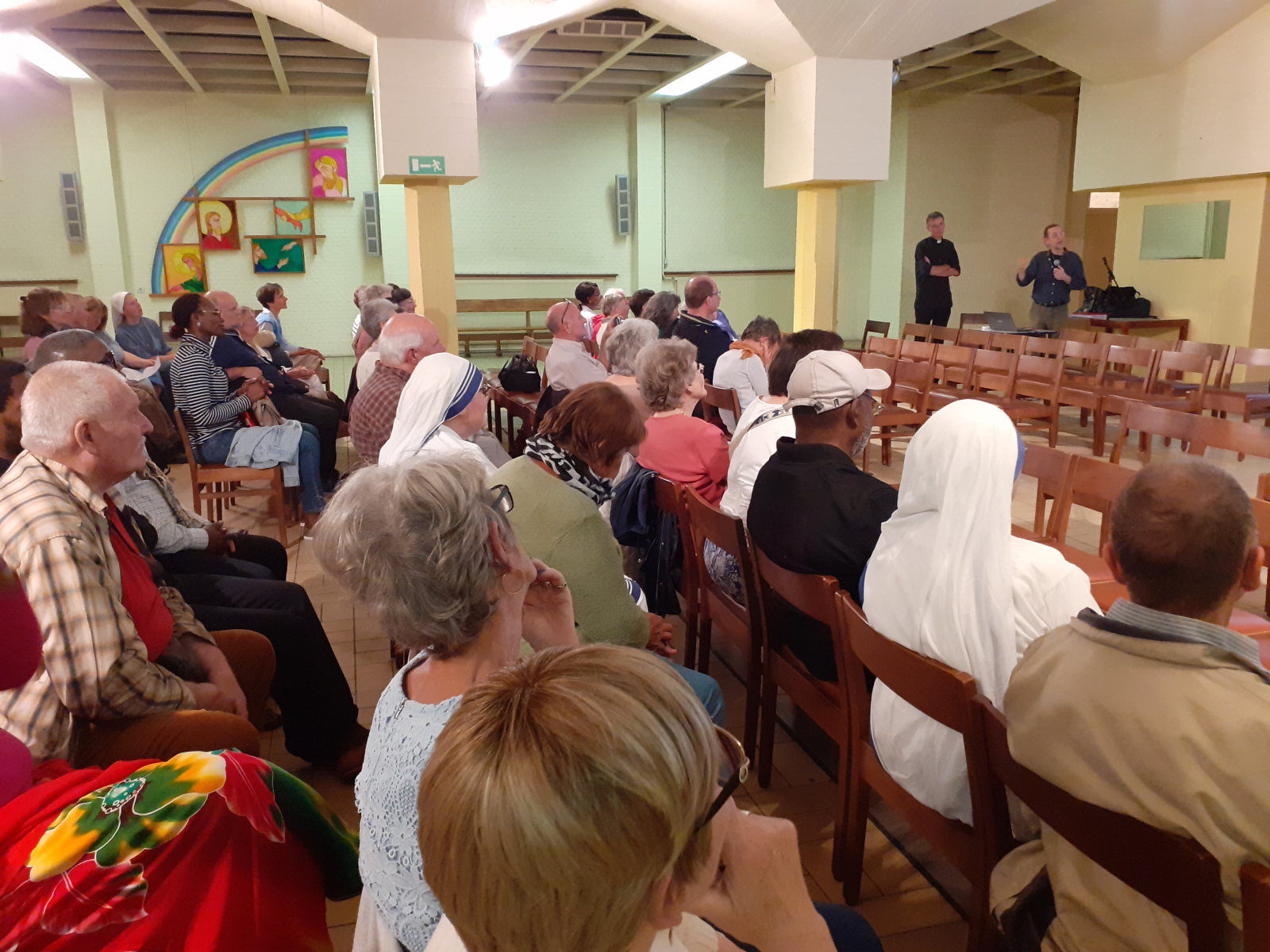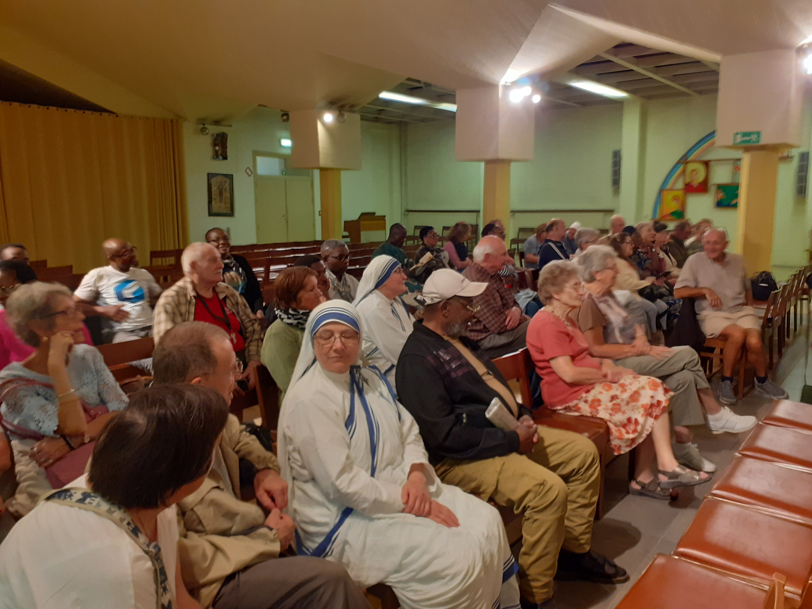 Ces longues minutes de prière étaient portées par des chants entonnés a capella par le père Sébastien Dehorder, rejoint par une jeune étudiante de Louvain-la-Neuve. Entendre les mots de Thérèse « Si j’avais commis tous les crimes du monde… » aide à se sentir concernés par la voie d’amour qu’elle a ouverte pour nous.