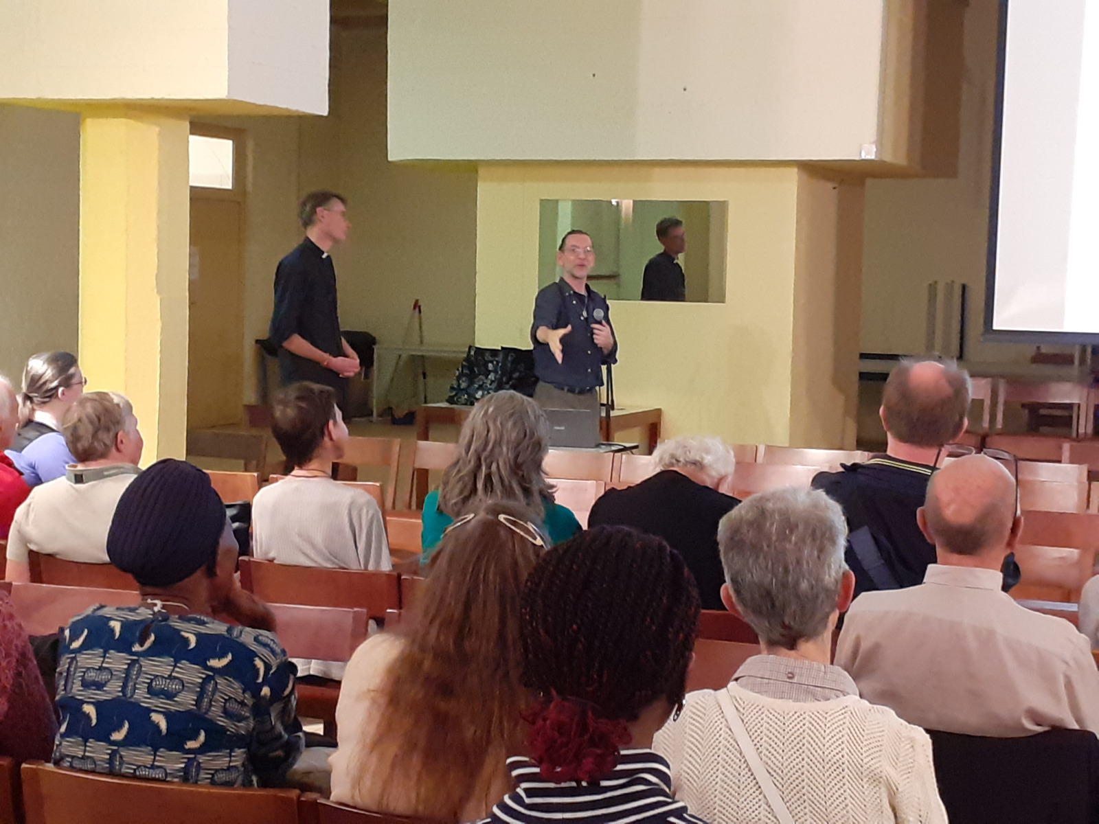 « De quel quartier de Bruxelles venez-vous? », lance le père Sébastien Dehorder en début d’après-midi ce 27 septembre. Lui-même reconnaît « être un étranger », puisqu’il vient de Louvain-la-Neuve. Les réponses fusent: 1030 Schaerbeek… 1000 les Marolles… puis viennent Anderlecht, Saint Gilles ou Molenbeek et même « la rue » !