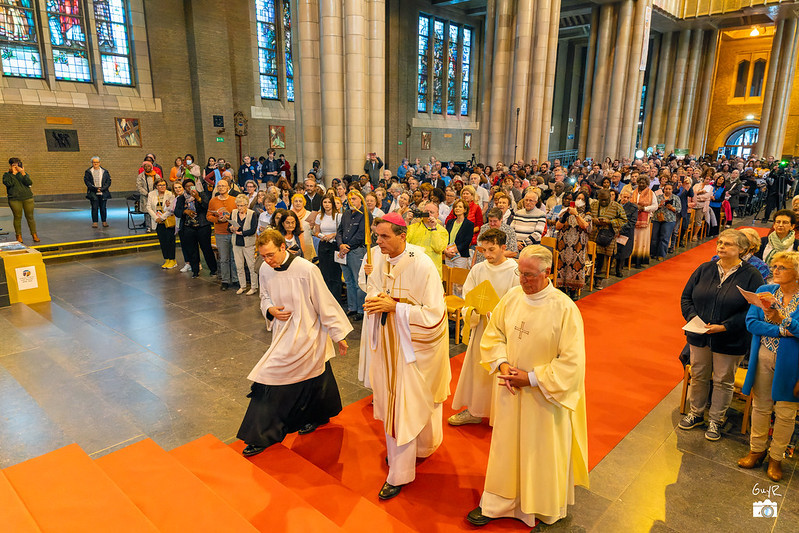 A 16h, tous étaient accueillis dans la partie principale de la basilique pour une messe présidée par mgr Terlinden accompagnés de tous les évêques de Belgique.