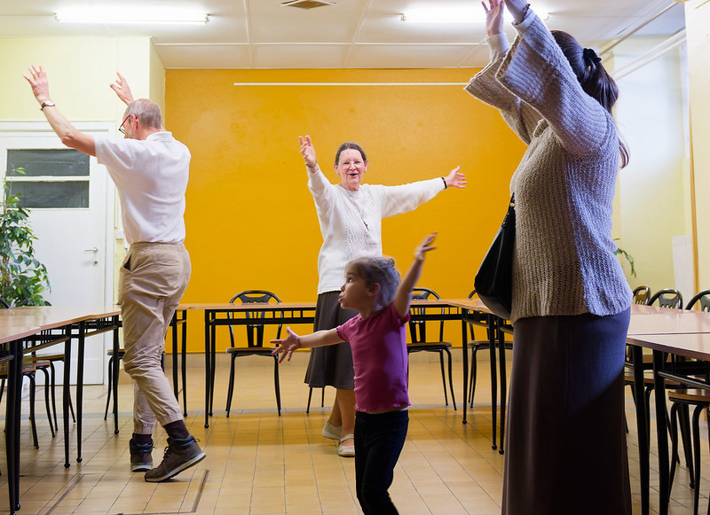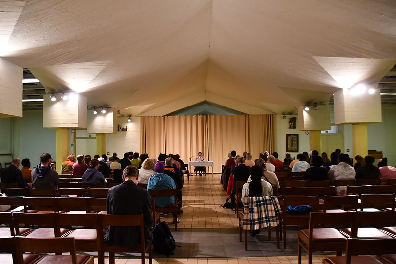 Ce samedi 30 septembre était la journée consacrée aux familles. Elle a réuni un public exclusivement francophone réduit pour un programme pourtant riche : 40 adultes et une trentaine d’enfants se sont retrouvés à la basilique pour des activités dissociées le matin (parents d’un côté et enfants de l’autre) avant de se retrouver pour un pique-nique sous le soleil dans l’école toute proche et un après-midi en commun.