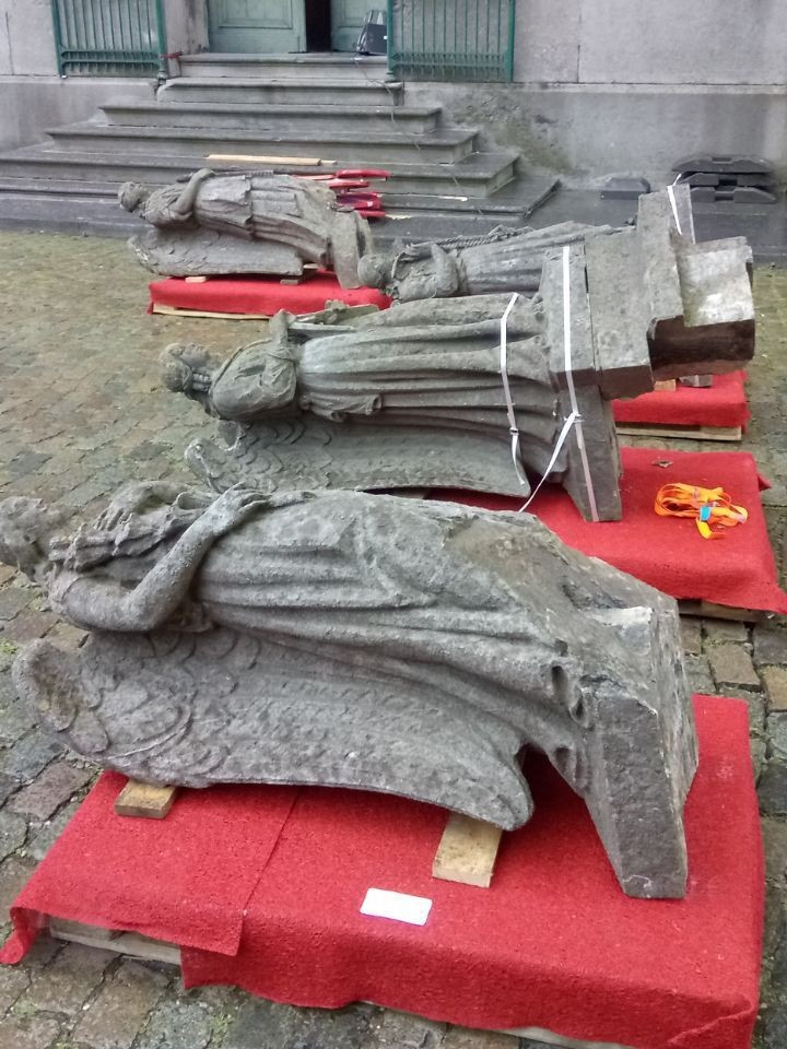 La croix et les 17 statues, fragilisées par l’usure des intempéries, devaient être enlevées et temporairement placées dans l’église pour les protéger et sécuriser les abords.