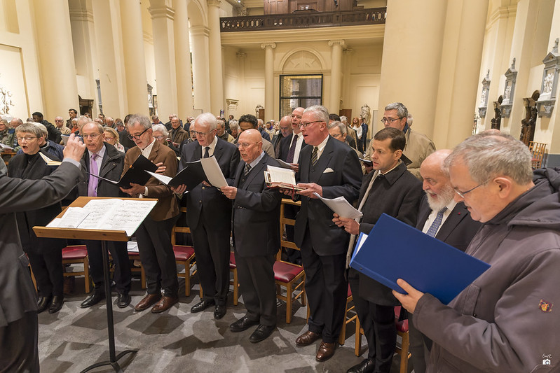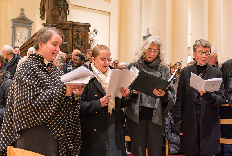 Cette célébration est la 1.237ème de notre chorale. Nous avons chanté pendant plus de 35 ans les premiers dimanches du mois et les grandes fêtes en l’église Notre-Dame du Sablon, et, nous chantons ici à Saint-Jacques depuis 12 ans. Je saisis cette occasion pour remercier encore une fois Monsieur l’abbé Robrecht Boone pour son accueil chaleureux. Nous avons également chanté pendant de nombreuses années les messes d’avant et de carême en l’église Saint-Henri à Woluwe-Saint-Lambert.