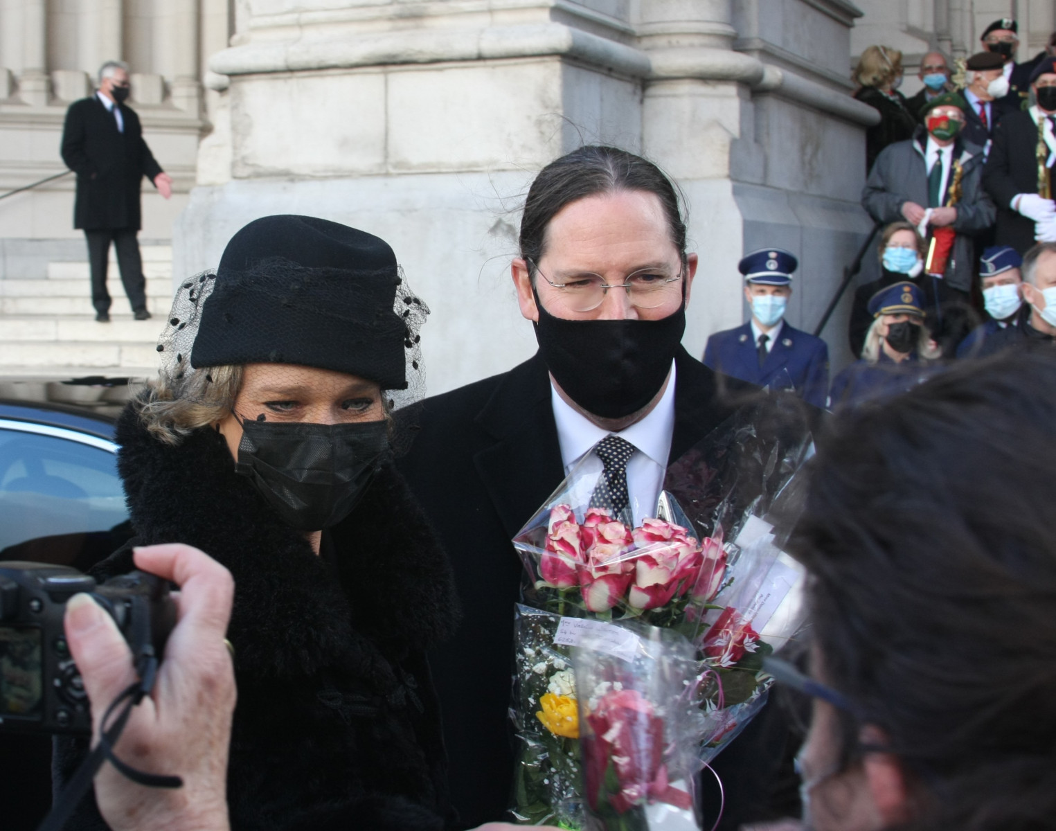 La cérémonie étant sur invitation, plusieurs dizaines de badauds attendaient à l’extérieur. Ils espéraient apercevoir la famille royale. Certains étaient venus avec des fleurs, des pancartes ou encore des vêtements aux couleurs du drapeau belge. Une dame avait même mis un noeud papillon tricolore à son chien!