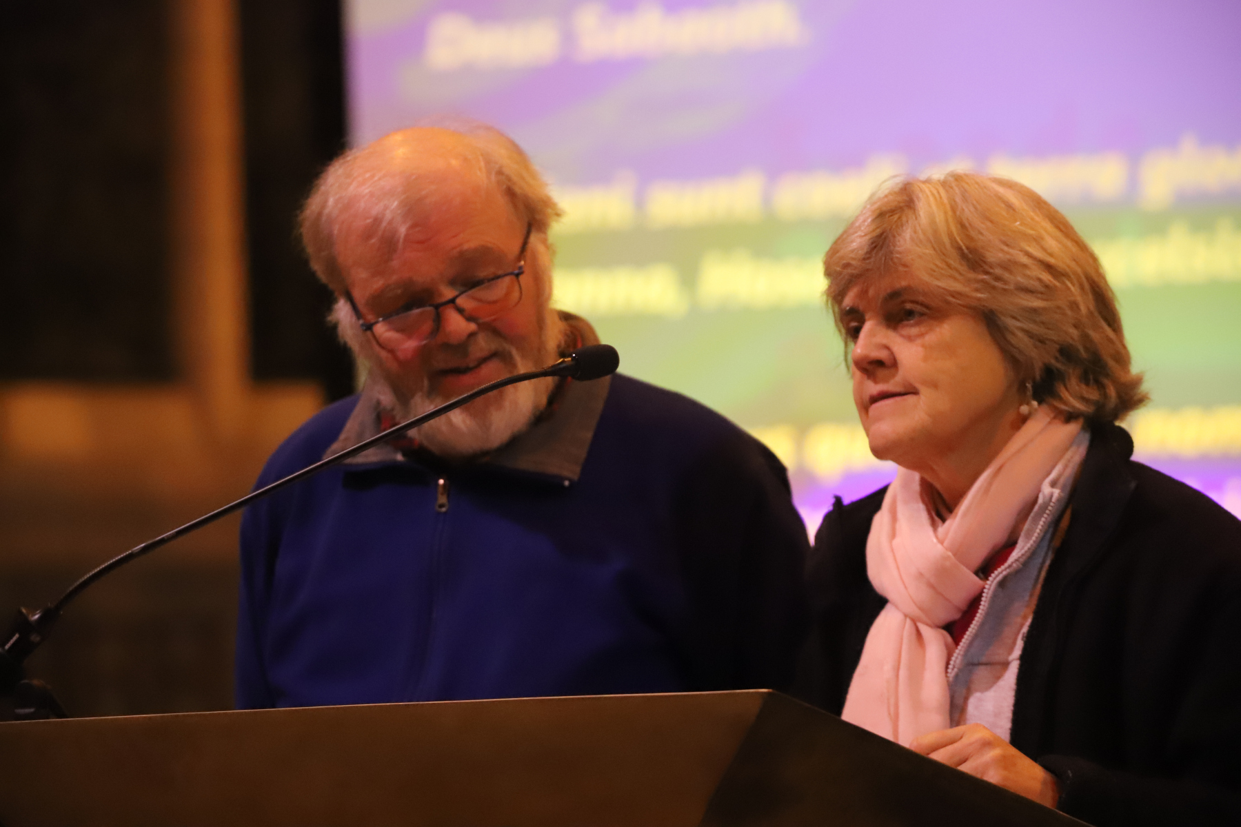 A la fin de la célébration, le vicaire général Steven Wielandts introduit le mot de remerciement des trois vicariats en reprenant les paroles du Cardinal : « l’évêque est celui qui donne un visage à l’Eglise ». Marie-Françoise Boveroulle (Bruxelles), Gisela Vanwinckel (Brabant Flamand) et les époux Myriam et Jean-François Frys (Brabant Wallon) se sont in fine rejoints pour mettre en exergue la qualité d’écoute du Cardinal et la lucidité de son regard sur l’évolution de notre société. Tous l’ont également remercié d’avoir incarné sa devise épiscopale « …Avec vous, je suis chrétien » d’une manière si inspirante.