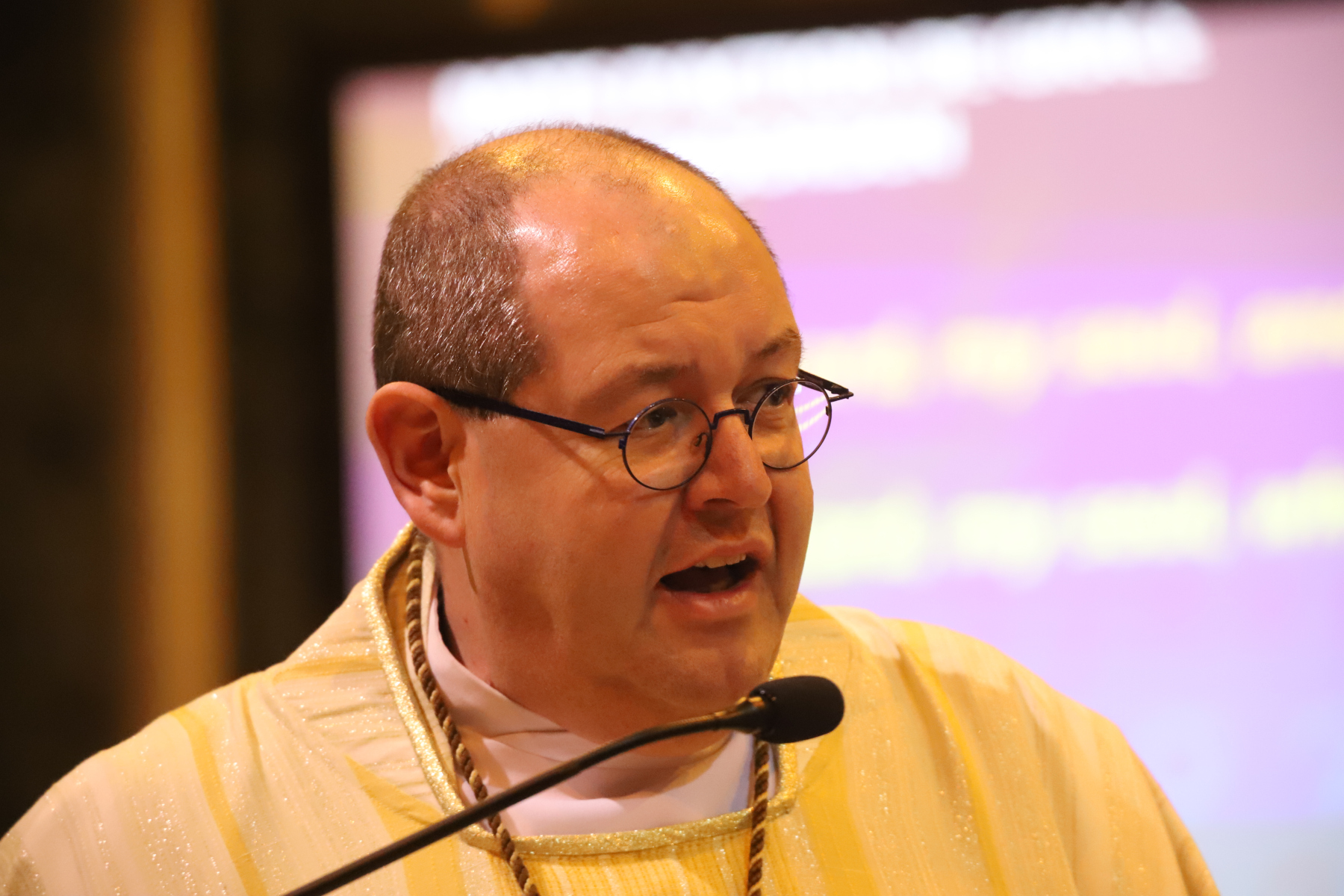 Après la salutation, Mgr Luc Terlinden, nouvel archevêque de Malines-Bruxelles, prend la parole pour introduire la célébration. Il fait le lien entre le synode et le parcours du Cardinal. La conversion d’une Eglise cléricale vers une Eglise synodale demande du temps et de l’engagement, sous la conduite de l’Esprit. L’engagement du Cardinal pour l’Eglise prend sa source dans sa propre vocation. Il n’avait aucun plan de carrière mais nous lui rendons grâce d’avoir répondu aux différents appels. Mgr Terlinden souligne également que tous ceux qui ont rencontré Mgr De Kesel ont trouvé en lui un frère, présent à leurs côtés.