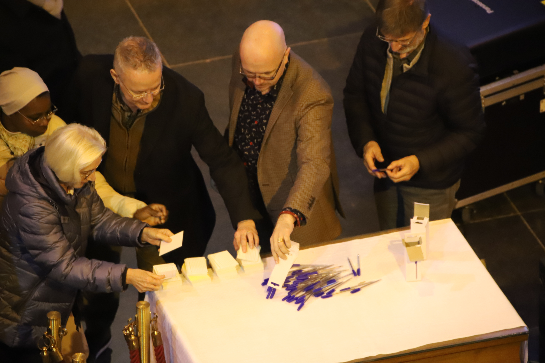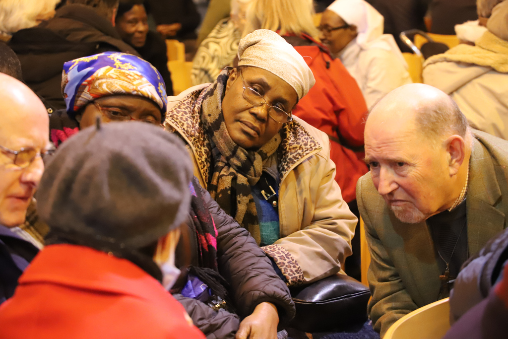 Nous avons pu vivre ce temps selon le schéma que nous commençons à connaître puisque c’est celui que nous avons utilisé depuis le début du synode, dès les rencontres au niveau local. La conversion vient de la conversation. Tous les participants ont joué le jeu et les chaises se sont rapidement tournées pour former plus d’une soixantaine de groupes de 5-6 femmes et hommes d’âge, de langue et d’état de vie différents. Une place importante est accordée au silence entre les tours de partage afin de favoriser la communion dans l’Esprit. Le premier temps de réflexion personnelle porte sur deux questions : dans les témoignages que j’ai entendus, qu’est-ce que je voudrais ramener à ma propre communauté ? Comment pouvons-nous faire le prochain pas sur le chemin synodal au sein de notre propre communauté ? Le premier temps de partage est un temps d’écoute, le second, un temps de réaction bienveillante. Pour terminer, chacun est invité à noter sur un petit carton le cadeau avec lequel il repart.