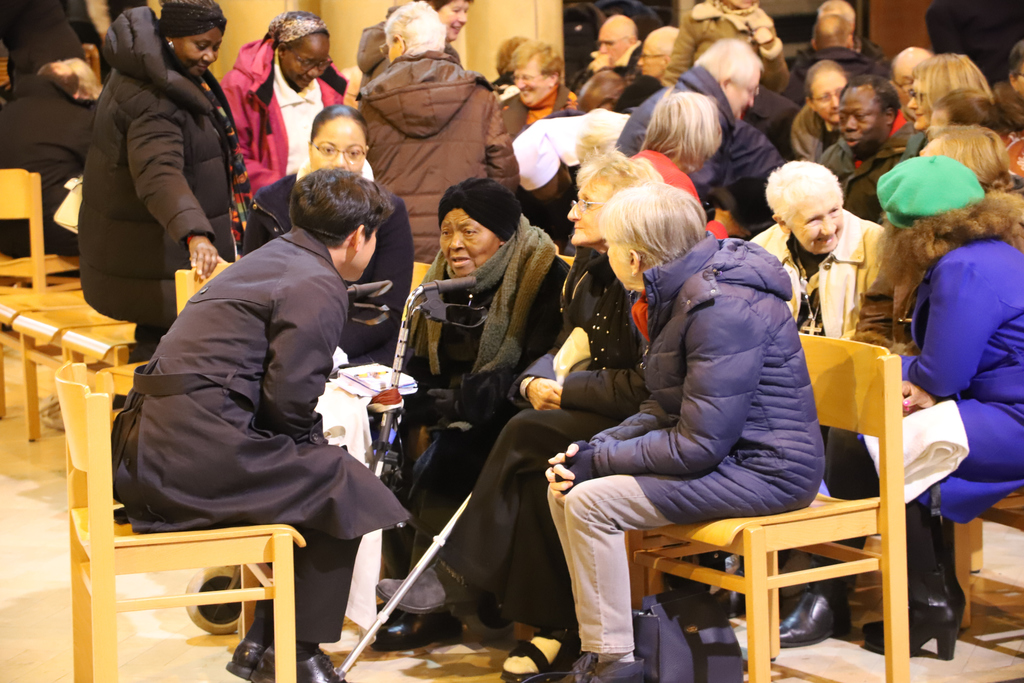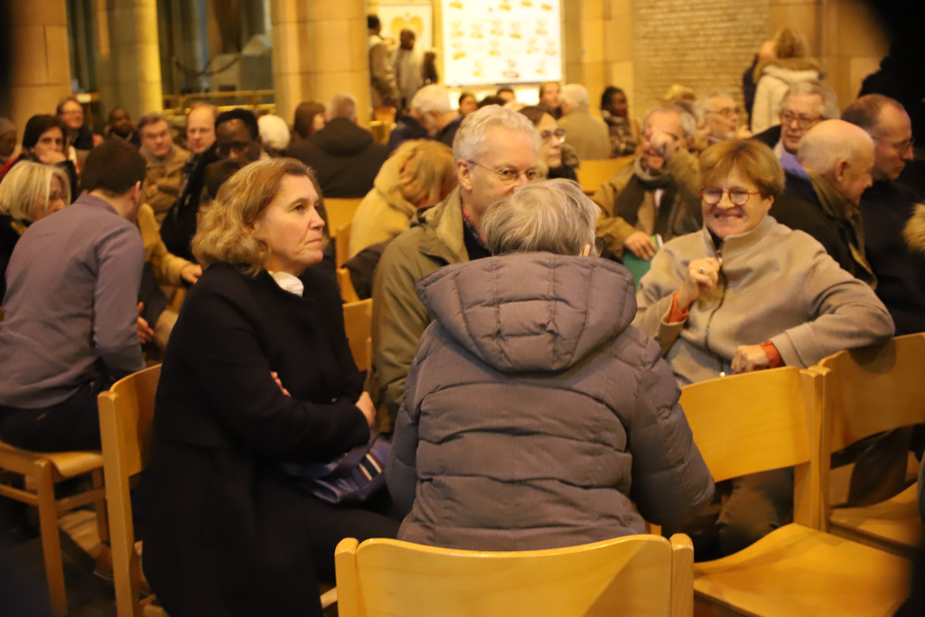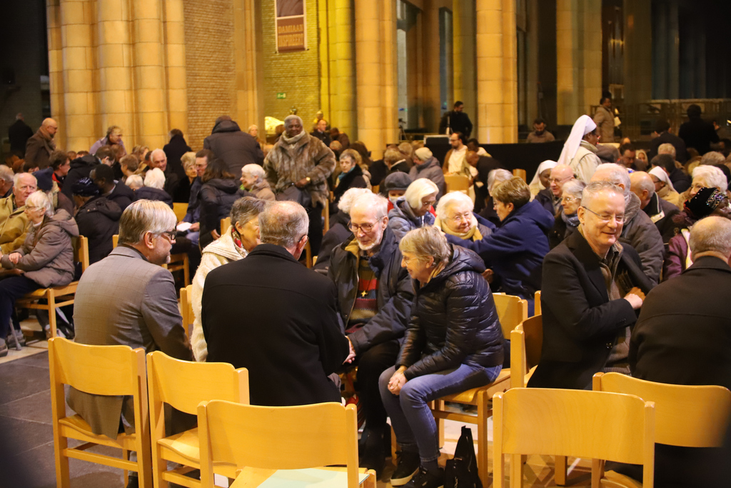 Peu avant 17h, le mouvement se poursuit : prêtres et diacres prennent le chemin de la sacristie, on salue les nouveaux arrivants, on s’interpelle, les chaises retrouvent leur place… la célébration d’action de grâce pour le Cardinal Joseph De Kesel se prépare.