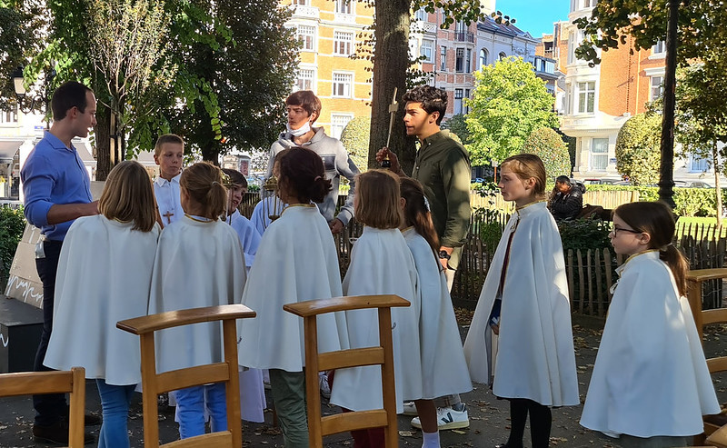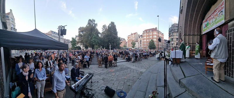 Le samedi 25 septembre a eu lieu la troisième édition du Bal du Curé. Le responsable d’unité pastorale des Sources Vives, l’abbé Cédric Claessens, avait lancé cette initiative à l’instar de ce qu’il avait déjà développé à Namur ; l’idée étant de faire se rencontrer les habituels fidèles avec les sympathisants et les voisins pour cette année une grande eucharistie en plein air sur la place Brugmann à Ixelles.