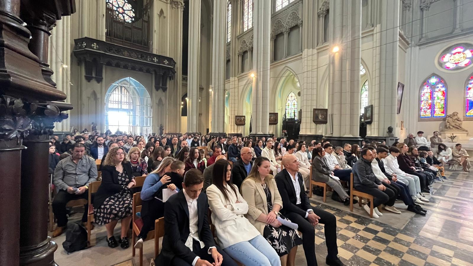 En ce jour de fête, l’assistance fut extrêmement nombreuse et la célébration solennelle. Des centaines de chaises furent également ajoutées pour accueillir les fidèles.