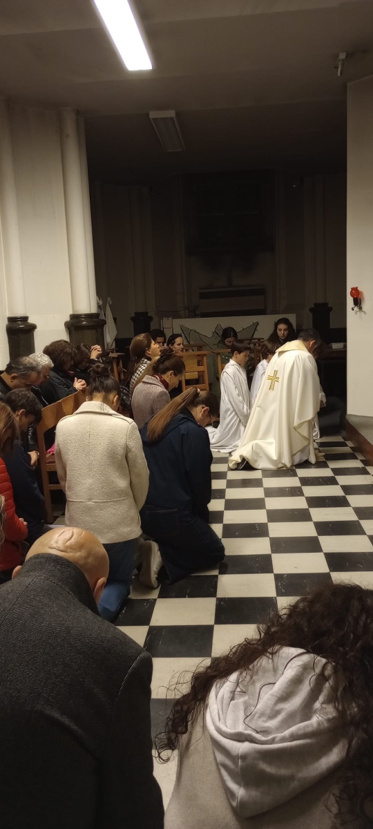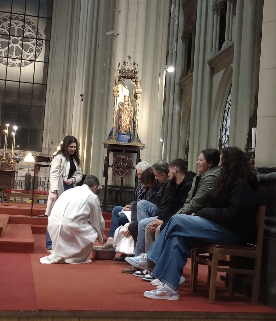Jeudi saint : Commémoration de la Dernière Cène de Notre Seigneur Jésus-Christ. Durant la messe, il y a eu le lavement des pieds de 12 membres de la communauté, et à la fin de la messe, un moment spécial d’adoration eucharistique a été vécue.