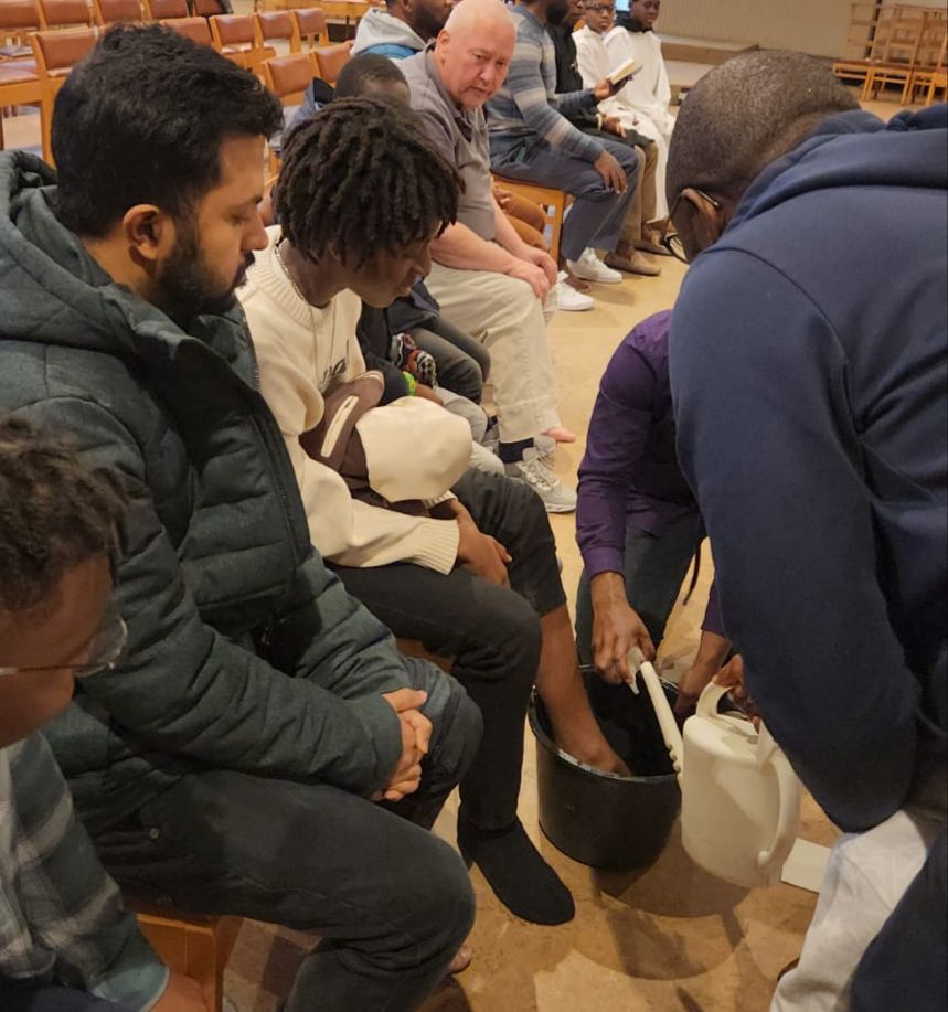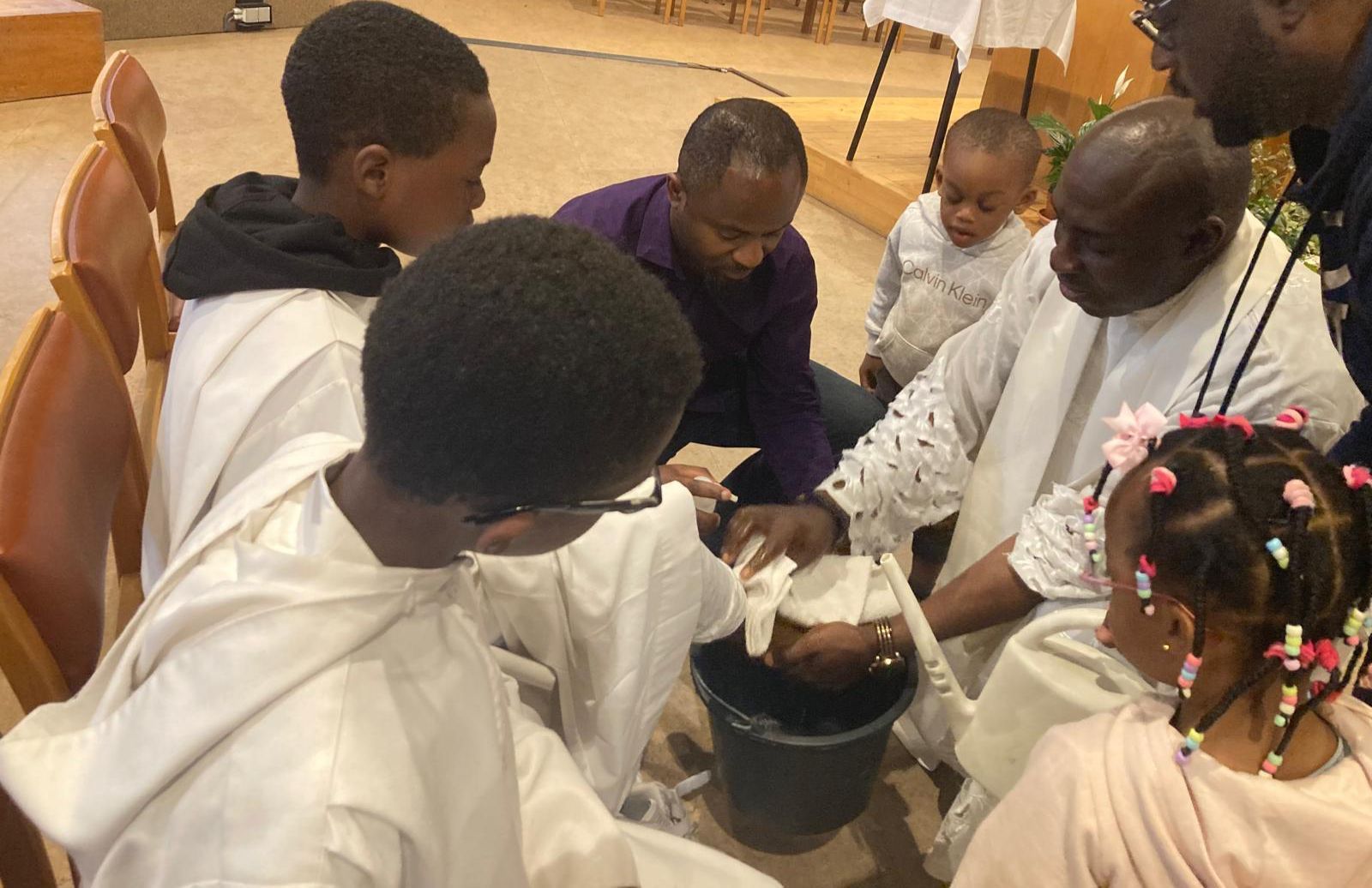 Jeudi, nous avons célébré le dernière Cène du Seigneur avec le lavement symbolique des pieds. Cette année a été d’autant plus spéciale que de nombreux enfants se trouvaient parmi les douze personnes dont les pieds ont été lavés.