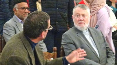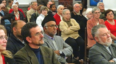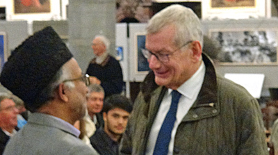 Dans le public nous avons eu la joie de retrouver l’imam Hafiz Essan Secundar de la communauté de la mosquée Baitul Mujeeb d’Uccle avec laquelle notre Unité Pastorale entretient des liens d’amitié. L’imam et une délégation de sa communauté ont ainsi pu longuement déambuler dans l’exposition et rencontrer de nombreuses personnes et personnalités.