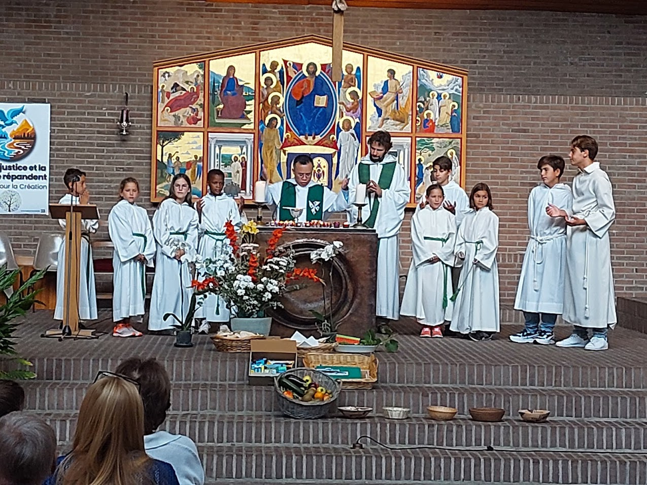 Retrouvant nos bonnes habitudes, chacun est ensuite parti pour son groupe d’échange pour partager par tranche d’âge avant de se retrouver pour la messe dominicale. Durant cette célébration, nous avons particulièrement mis l’accent sur l’offrande, symbole de notre thème « changer de regard et se relier au vivant ».