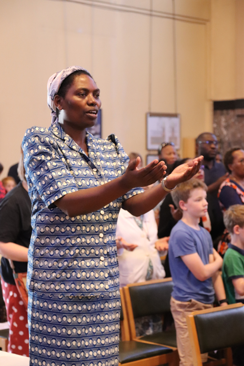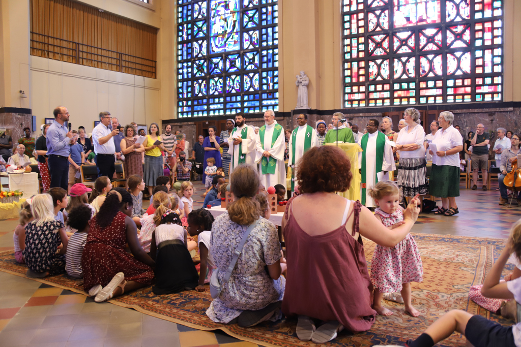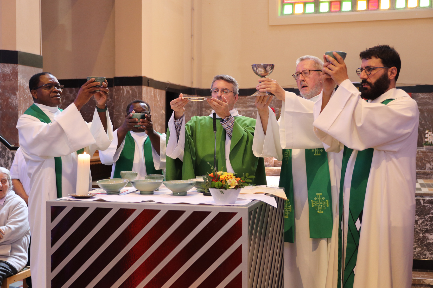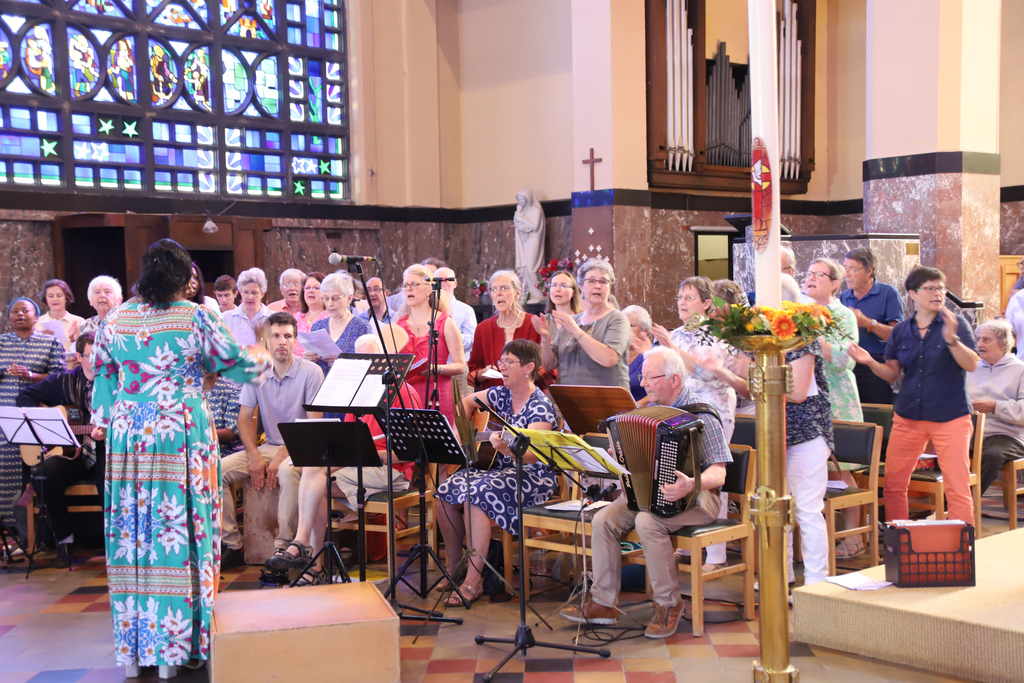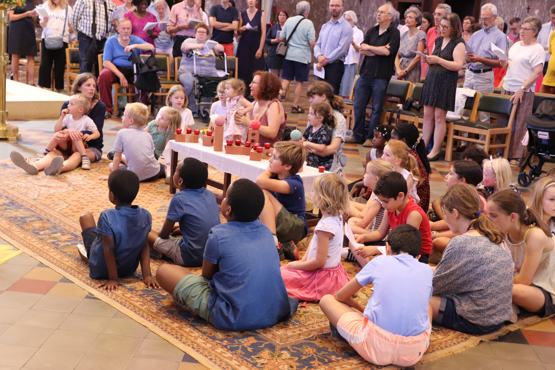 Ce dimanche 25 juin, la célébration eucharistique en l’honneur de la sœur Anne Peyremorte a eu lieu à l’UP Kerkebeek. A occasion de cette célébration de fête, la célébration à été présidé par le Doyen Éric Vancraeynest. Tout le monde a payé de sa personne. Du Frère Roger, qui a joué de l’orgue, aux enfants, qui ont animé l’Offertoire, en passant par ceux et celles qui ont porté la prière universelle et appelé la bénédiction de Dieu sur le quintet à venir.L’abbé Salomon, a audacieusement entonné la ‘grande doxologie’, à la Kerkophonique, dirigée dans une magnifique unité par Christiane, Hedwig, Cécile et Godelive.
